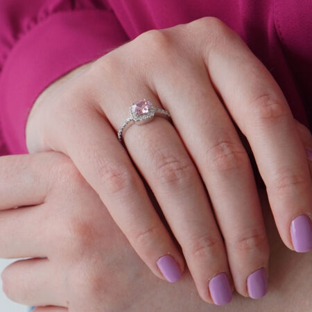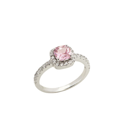 Δαχτυλίδι Με Ροζ Πέτρα Και Λευκά Ζιργκόν Σε Ασήμι 925