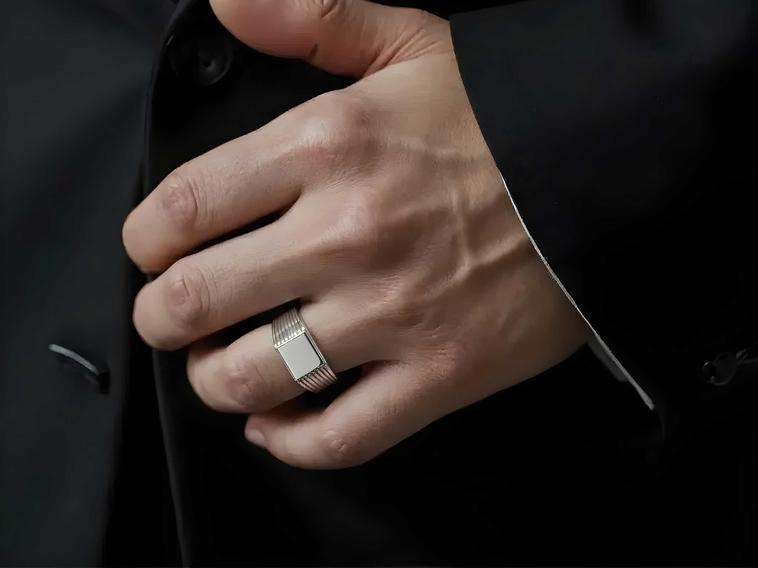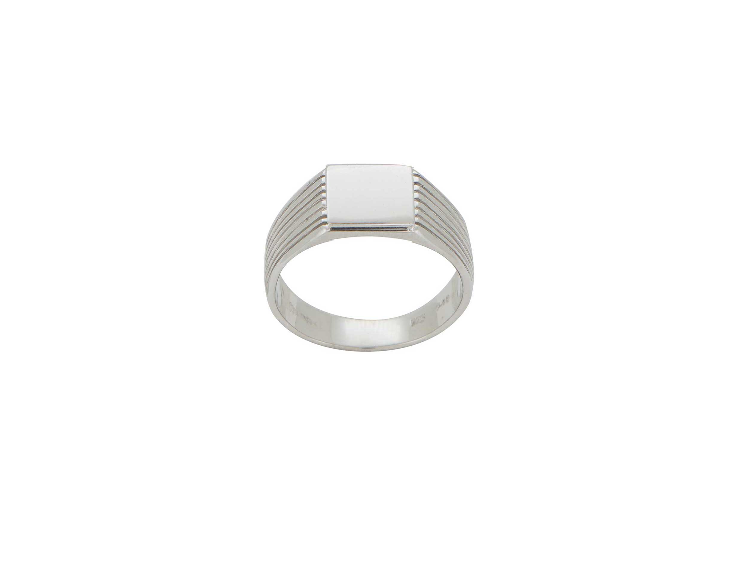 Κομψό ανδρικό ασημένιο δαχτυλίδι 925, με λουστρέ φινίρισμα και υπέροχο σχέδιο με ανάγλυφες ρίγες στη γάμπα. Η επιφάνειά του είναι ιδανική για χάραξη αρχικών! Αποστέλλεται σε συσκευασία δώρου.
