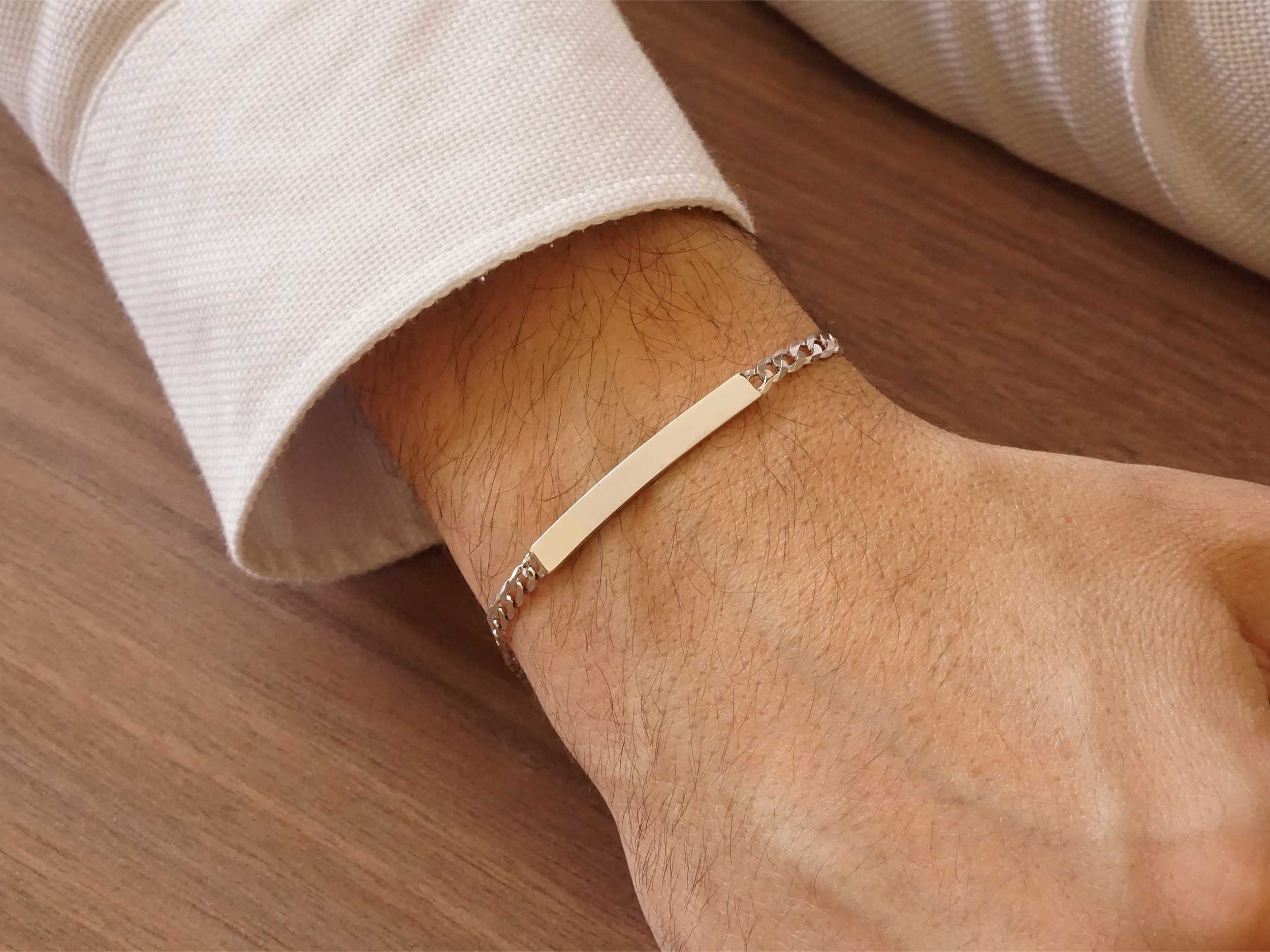 Δώστε στυλ στην καθημερινότητά σας με αυτήν την ασημένια unisex ταυτότητα 925 με gourmet αλυσίδα 21 cm. Μπορείτε να χαράξετε όνομα ή αρχικά, ενώ η γυαλιστερή ασημένια επιφάνεια της προσθέτει κομψότητα και λάμψη. Ιδανική για κάθε στυλ.