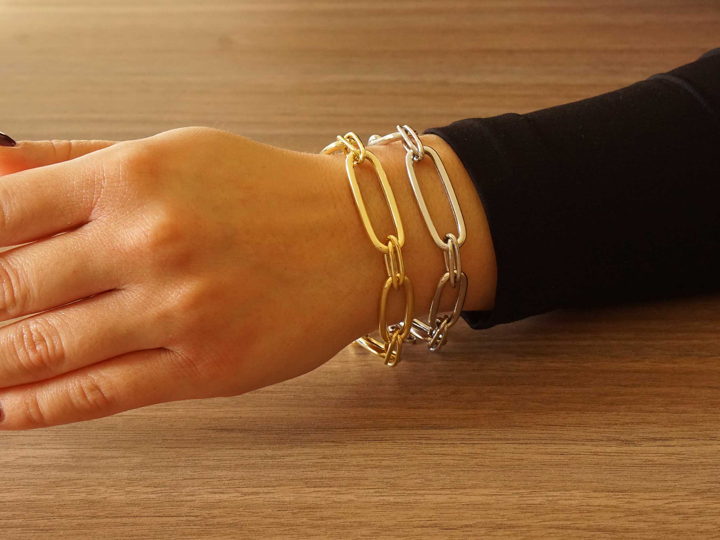 Ασημένιο βραχιόλι αλυσίδα, από ασήμι 925, συνολικού μήκους 22,50 cm. Έχει λουστρέ φινίρισμα, λευκό χρώμα μετάλλου και η πλέξη των κρίκων του είναι μοναδική. Ο ιδιαίτερος σχεδιασμός του σε συνδυασμό με τον έντονο όγκο του θα προσδώσουν λάμψη σε κάθε λουκ!