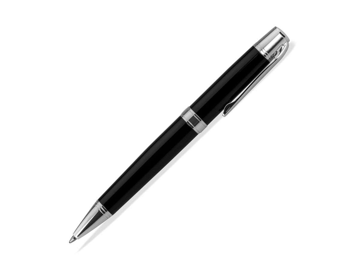 Μαύρο στυλό ballpoint επαργυρωμένο με ασήμι 925, με λουστρέ φινίρισμα.