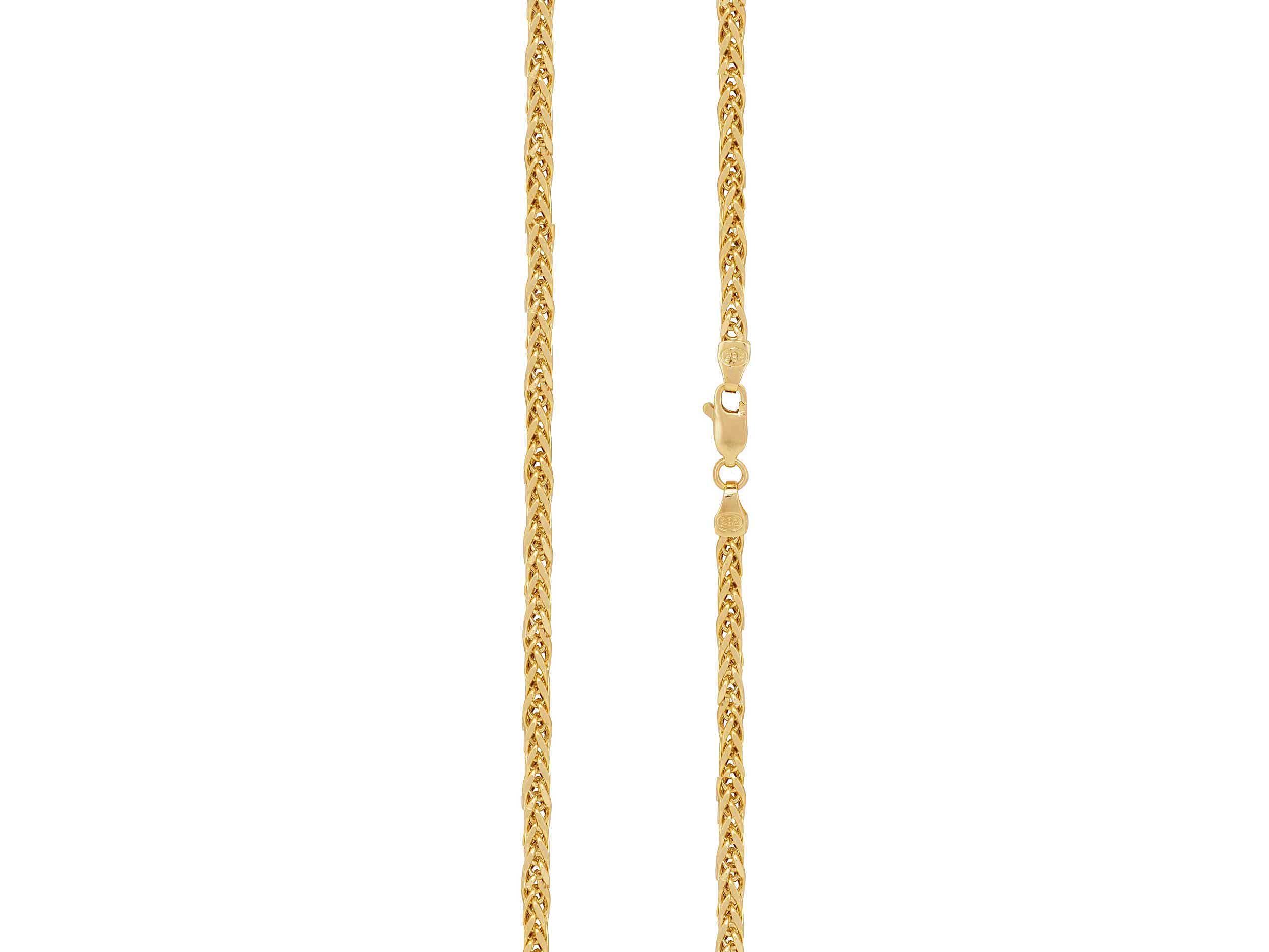 Χρυσή αλυσίδα σπίγγα 14 Καρατίων, με λουστρέ φινίρισμα και λαμπερό διαμαντάρισμα. Το μήκος της είναι 45,00 cm και το πλάτος της 3 mm. Μια εντυπωσιακή αλυσίδα που μπορεί να φορεθεί και μόνη της αναδεικνύοντας το στυλ σας.