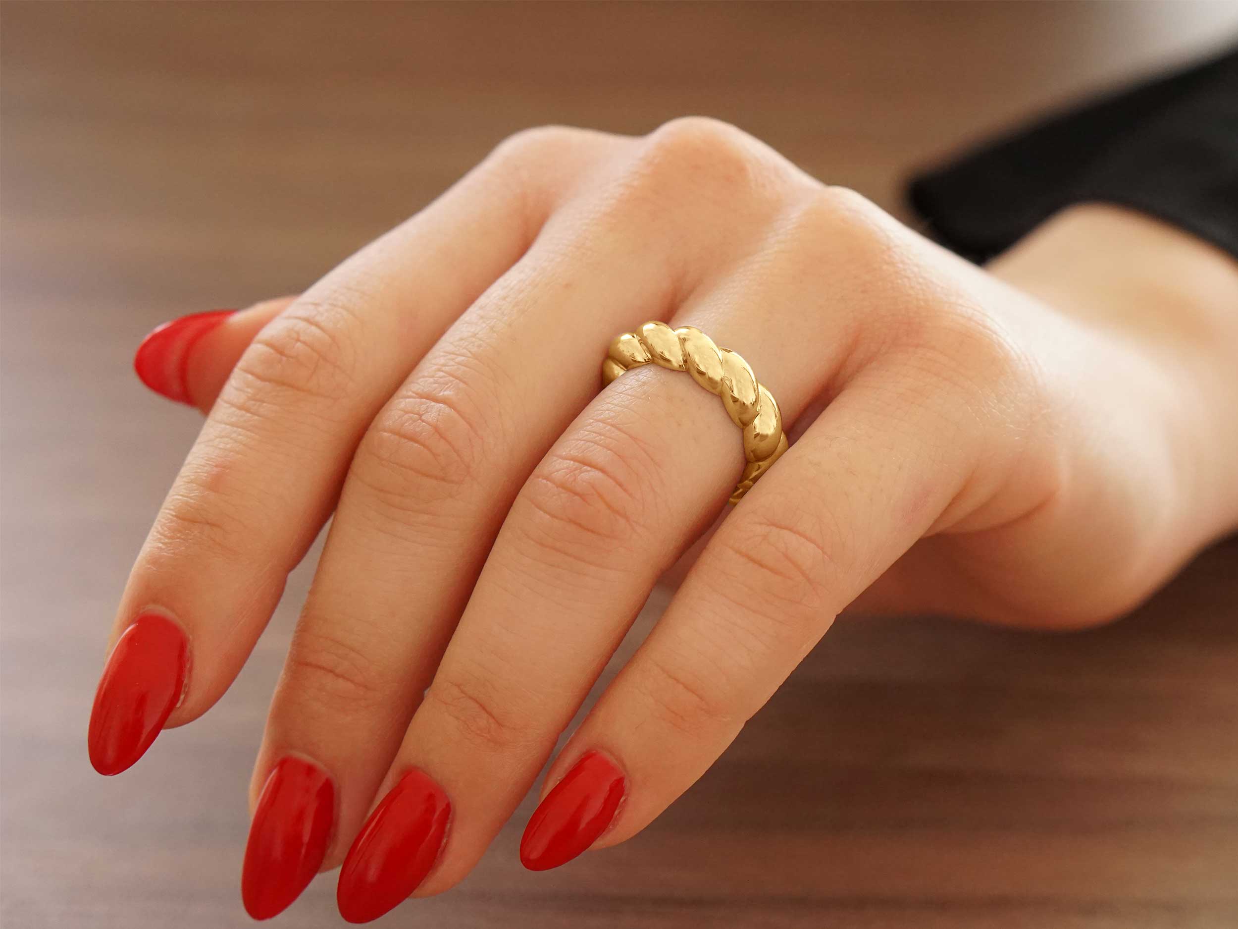Χρυσό δαχτυλίδι 14Κ, με λουστρέ φινίρισμα και υπέροχο, ανάγλυφο, στριφτό σχέδιο. Φορέστε το καθημερινά και απογειώστε στιλιστικά κάθε σας outfit!