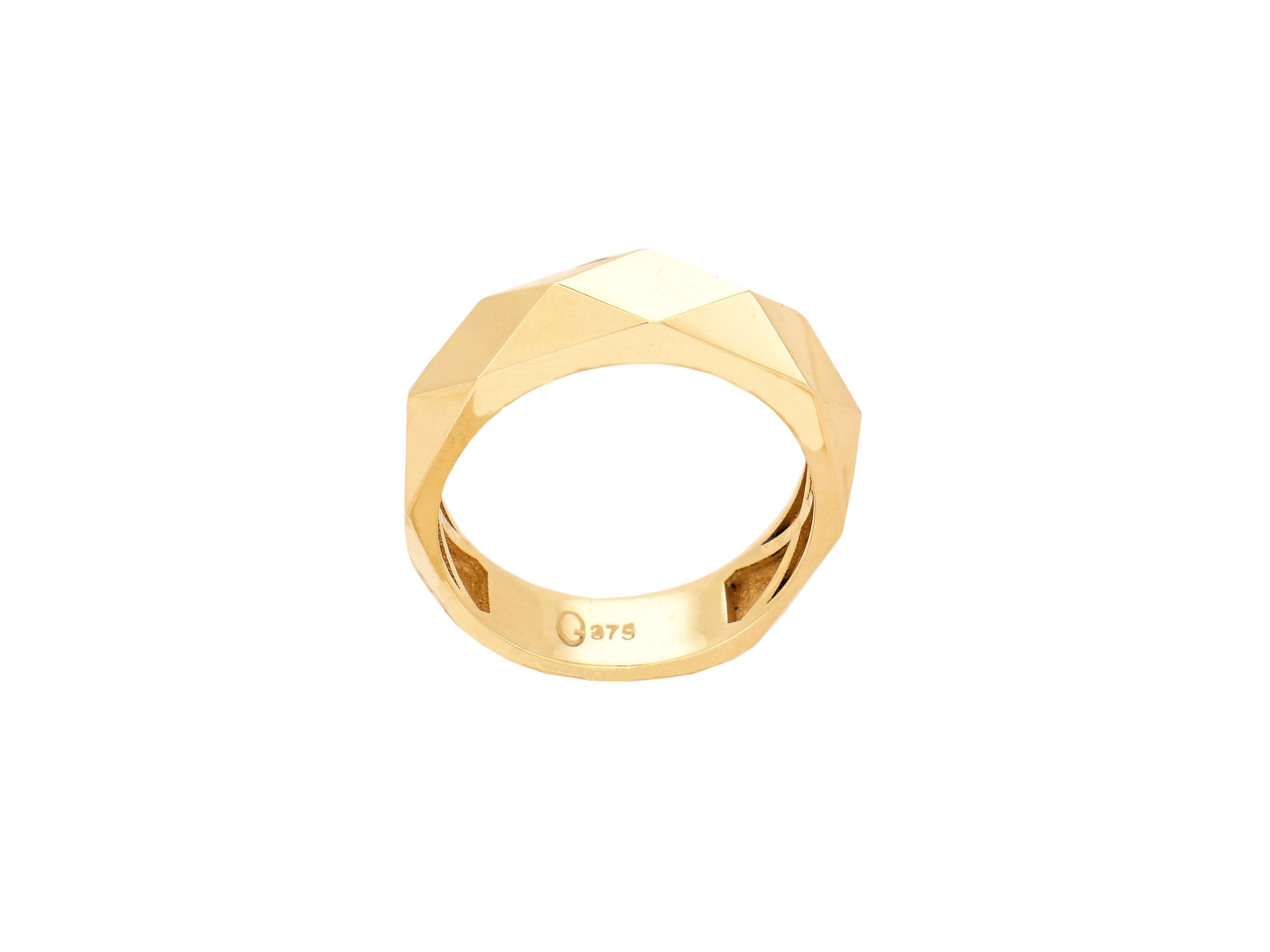 Χρυσό δαχτυλίδι 9 Καράτια, με λουστρέ φινίρισμα. Το μοναδικό του σχήμα αντανακλά το φως με έναν ξεχωριστό τρόπο. Φορέστε το μόνο του για μίνιμαλ στυλ ή συνδυάστε το με άλλα δαχτυλίδια για ένα πιο τολμηρό look.