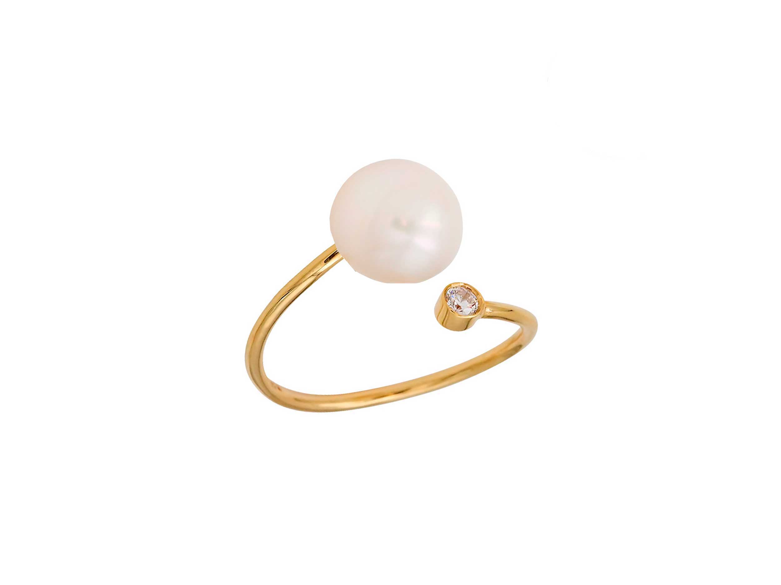 Υπέροχο χρυσό δαχτυλίδι μαργαριτάρι fresh water 14 Καρατίων, με λουστρέ φινίρισμα. Η ποιότητα του μαργαριταριού είναι 6Α, η διάμετρος του 10,5 – 11 mm σε σχήμα πομπέ (Button) και κοσμείται με μία cubic ζιργκόν πέτρα σε λευκό χρώμα. Έχει τη δυνατότητα να ανοιγοκλείνει ώστε να προσαρμόζεται εύκολα στο μέγεθος του δαχτύλου σας. Ένα δαχτυλίδι με κομψή και διαχρονική σχεδίαση που μπορεί να φορεθεί σε οποιαδήποτε περίσταση!