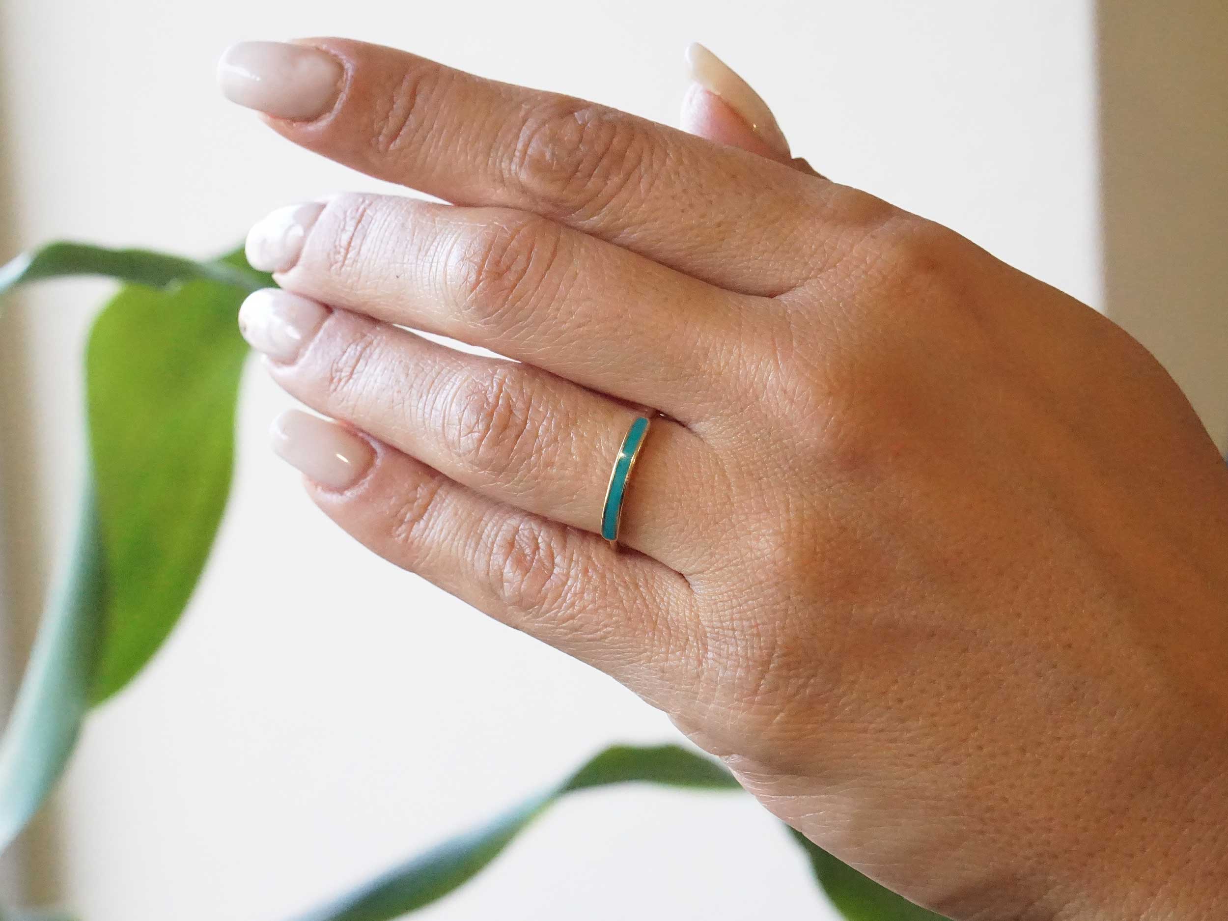 Χρυσό δαχτυλίδι με σμάλτο, 8 Καρατίων. Ένα κομψό, minimal δαχτυλίδι με λουστρέ φινίρισμα, διακοσμημένο με τιρκουάζ σμάλτο. Επιλέξτε το για να προσθέσετε χρώμα στις εμφανίσεις σας!