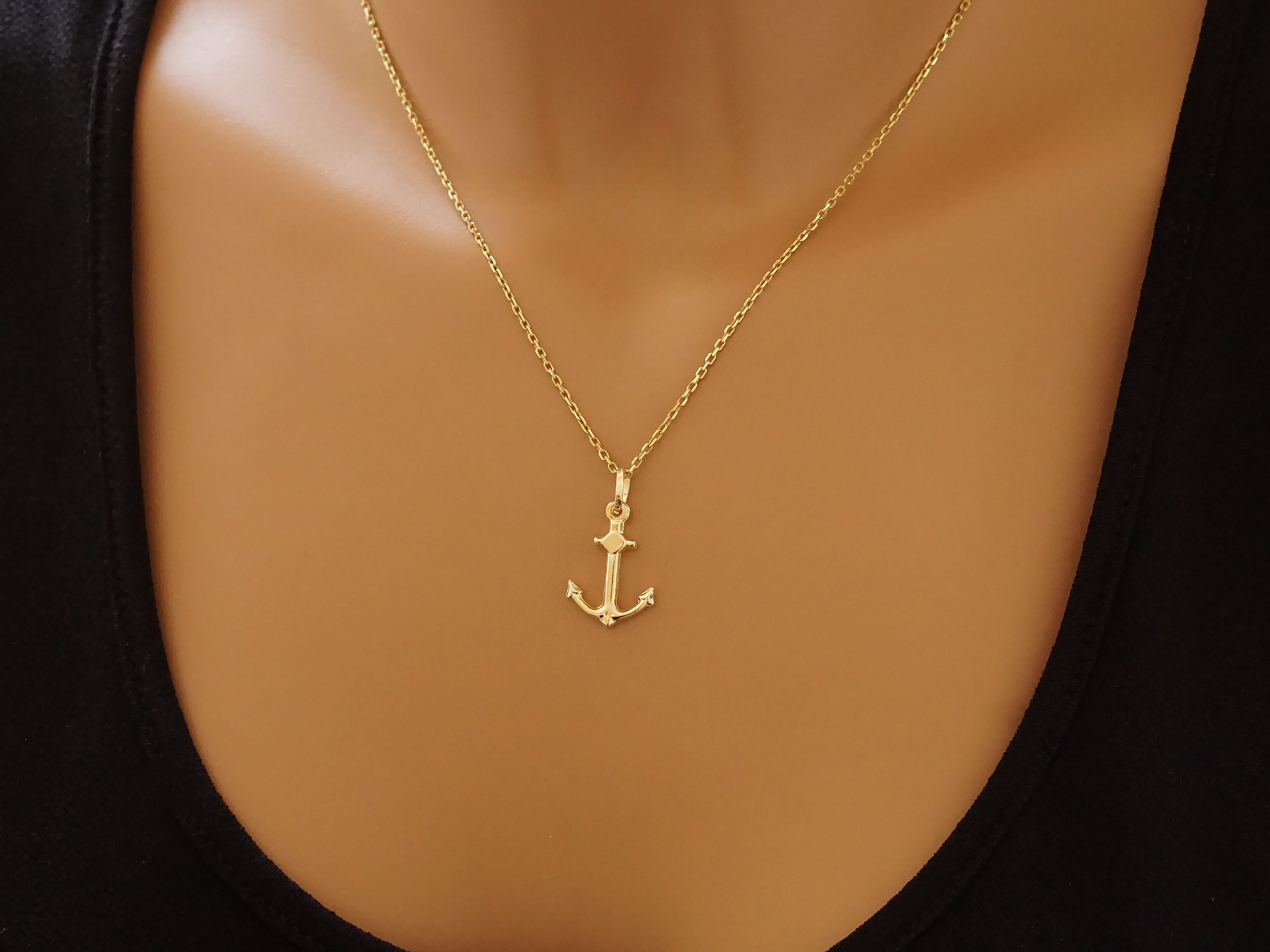 Χρυσό μενταγιόν άγκυρα 14 Καρατίων. Το συνολικό μήκος του με τον κρίκο είναι 2,50 cm. Ιδανικό για λάτρεις της θάλασσας ή ως ένα ξεχωριστό δώρο. Μπορείτε να το συνδυάσετε με μια χρυσή αλυσίδα 14Κ.