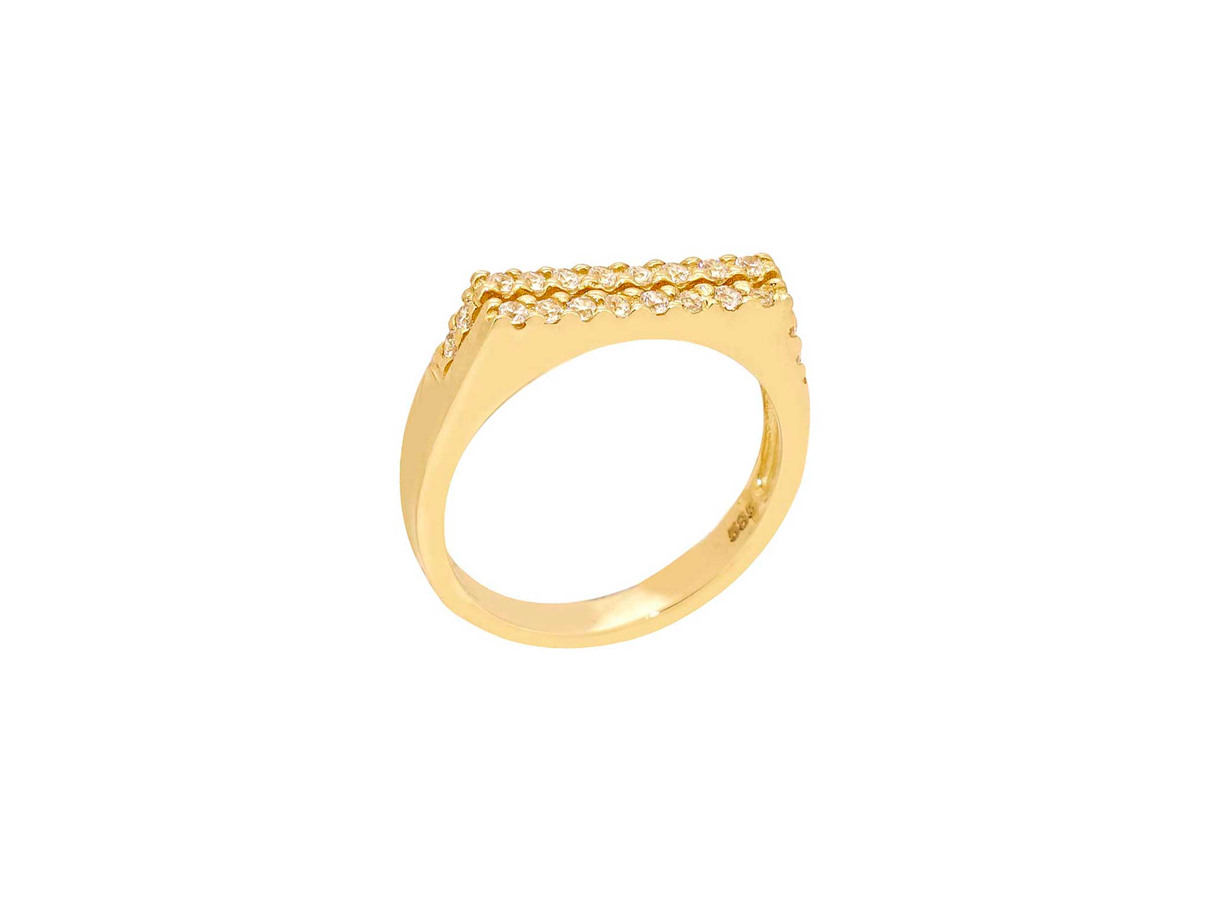 Χρυσό σειρέ δαχτυλίδι 14 Καρατίων, με λουστρέ φινίρισμα. Ένα εντυπωσιακό δαχτυλίδι, διακοσμημένο με δύο σειρές από λαμπερές cubic ζιργκόν πέτρες σε λευκό χρώμα. Μπορεί να γίνει σετ με το κολιέ, το βραχιόλι και τα σκουλαρίκια της ίδιας σειράς!