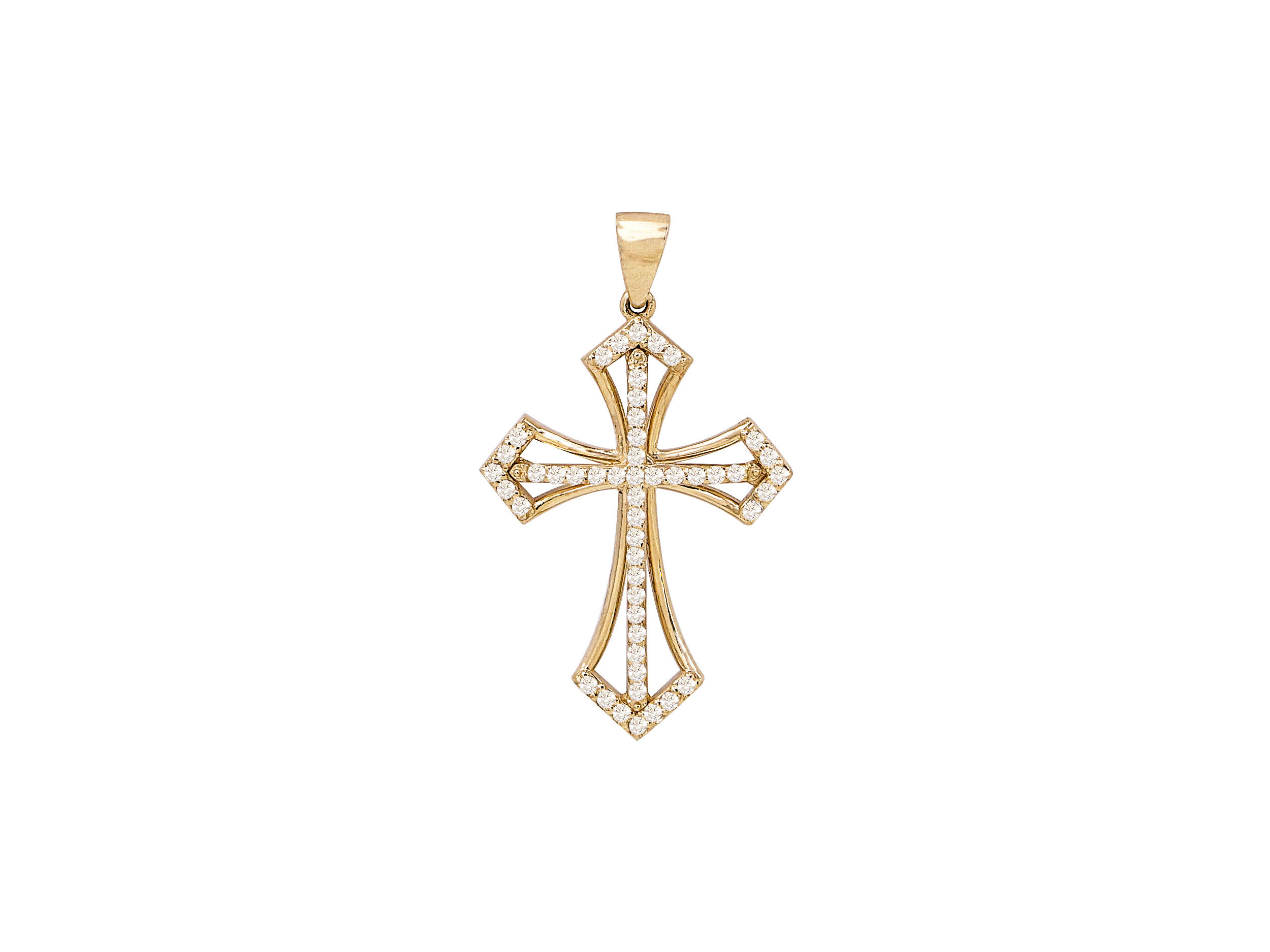 Μοναδικός χρυσός σταυρός 18Κ γυναικείος, με λουστρέ φινίρισμα. Το συνολικό μήκος του με τον κρίκο είναι 3,10 cm. Κοσμείται στη μπροστινή πλευρά του με 49 διαμάντια κοπής brilliant. Ένα ιδιαίτερα κομψό και εντυπωσιακό κόσμημα που θα συνοδεύει κάθε σας εμφάνιση!