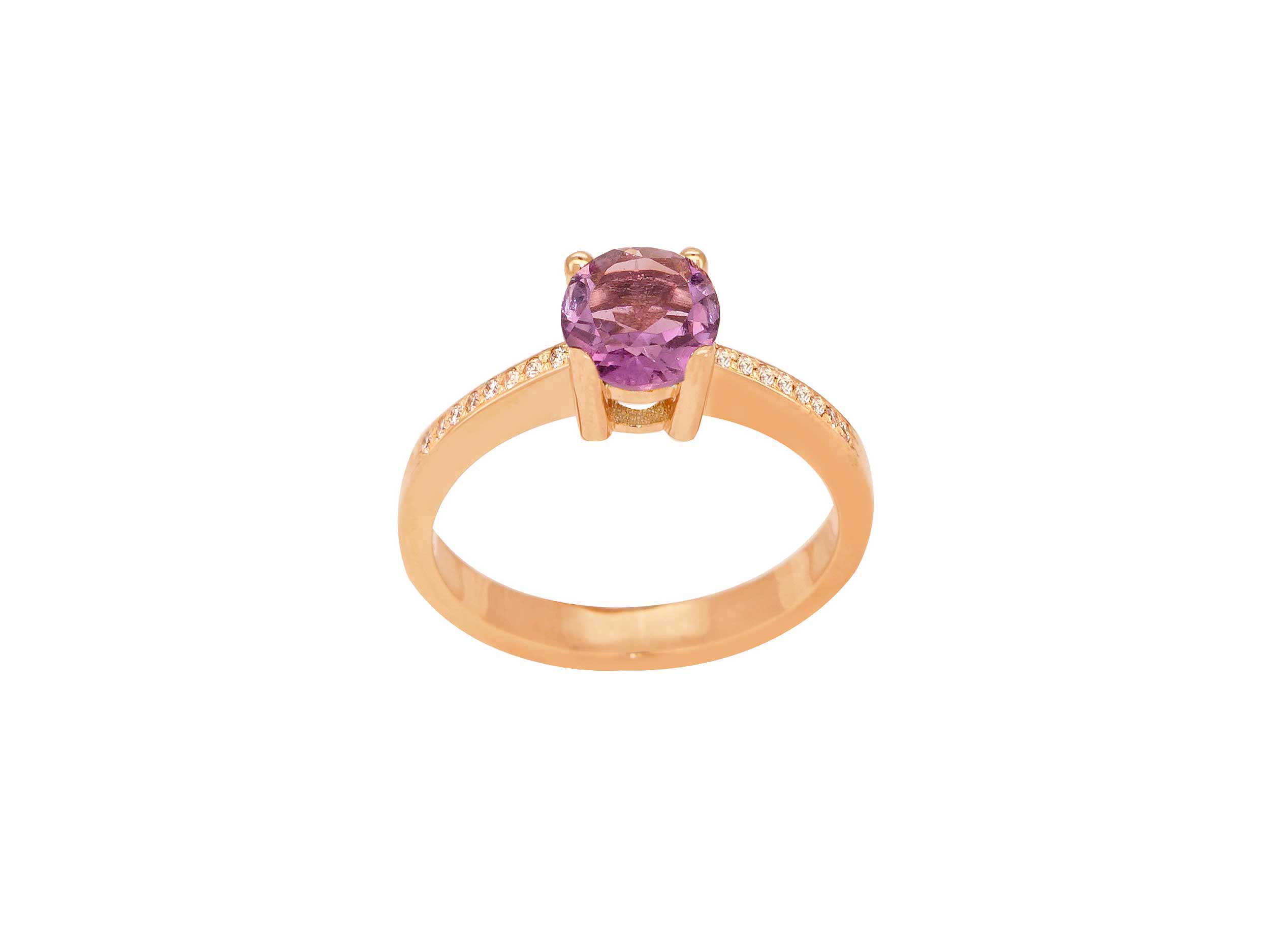 Δαχτυλίδι Με Αμέθυστο Και Διαμάντια Σε Ροζ Χρυσό 18Κ (κωδ: GR2111)