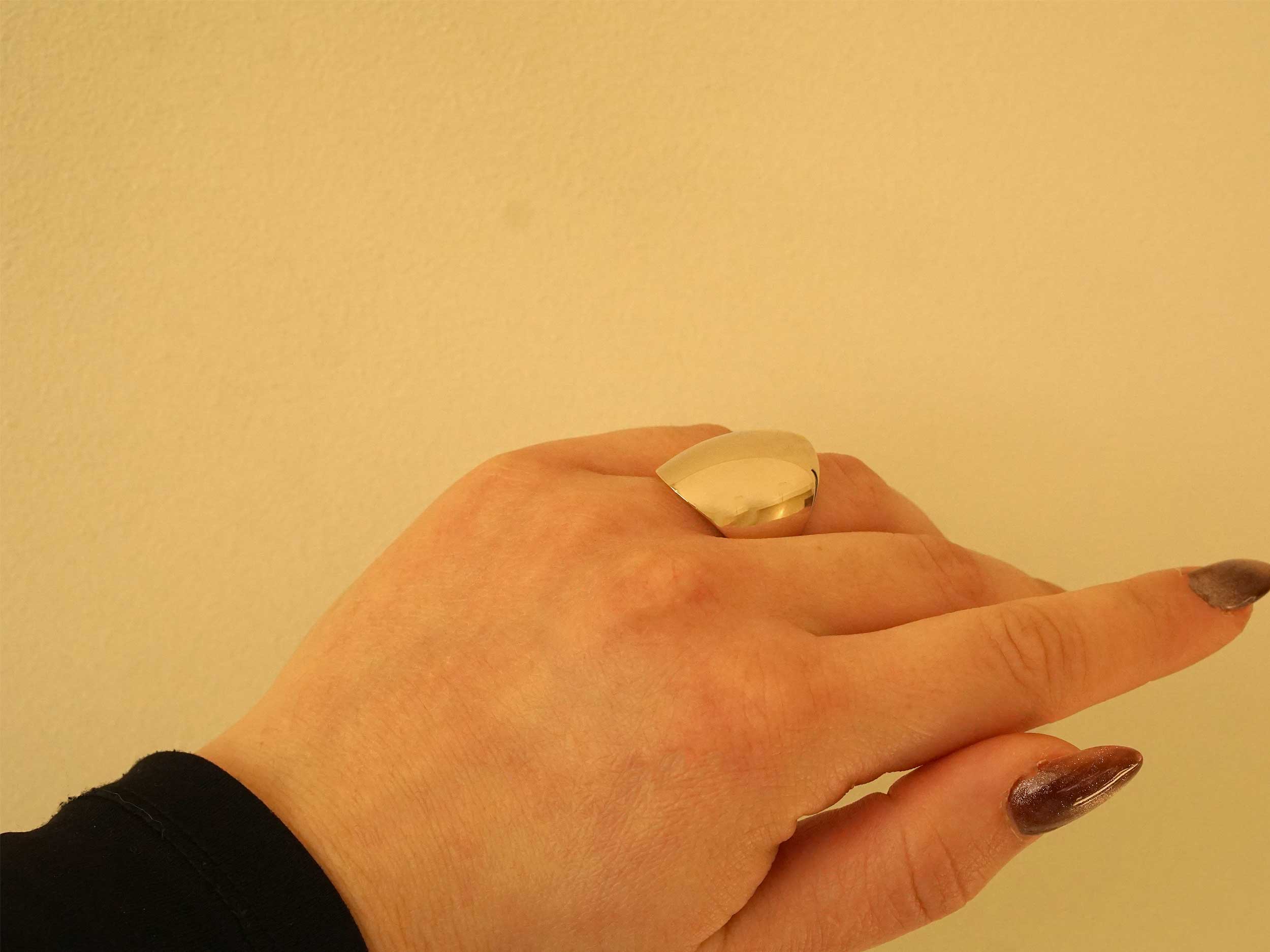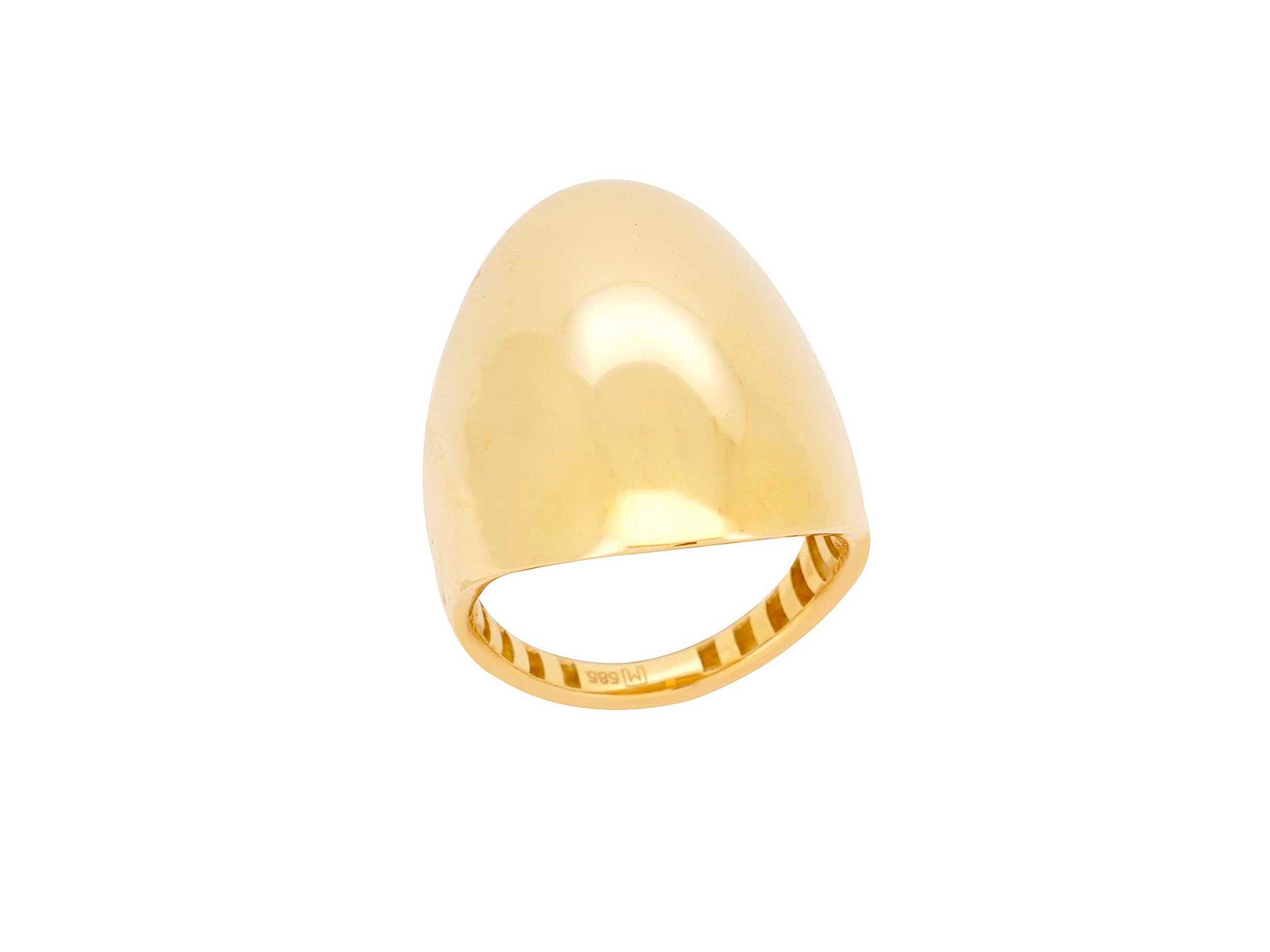 Δαχτυλίδι χρυσό 14Καρατίων, με λουστρέ φινίρισμα. Ένα κόσμημα με σύγχρονη αισθητική και επιβλητική παρουσία. Αποτελεί την ιδανική επιλογή για γυναίκες που επιθυμούν ένα statement κόσμημα για τις εξόδους τους.