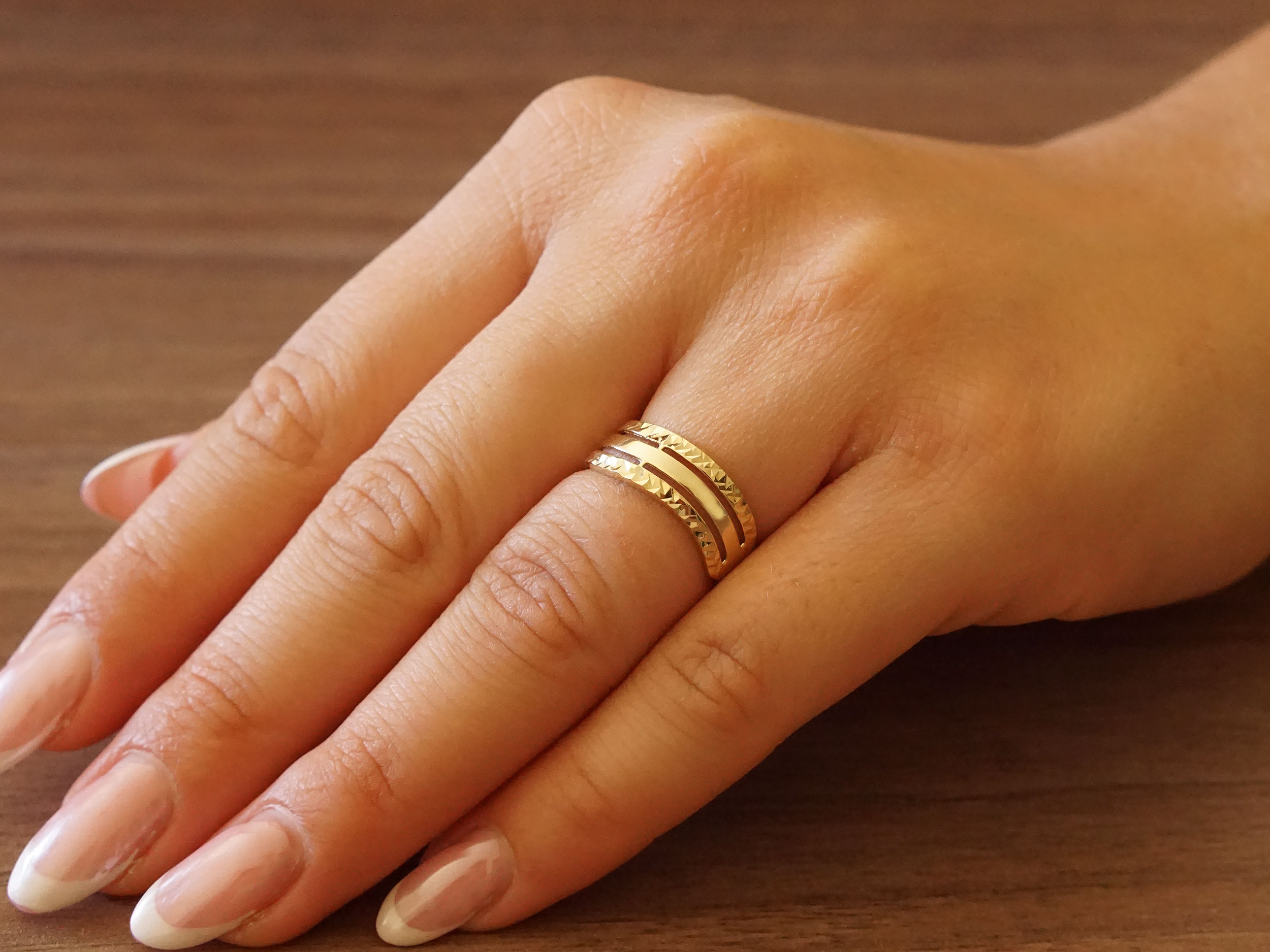 Δαχτυλίδι χρυσό με διαμαντάρισμα 9 Καρατίων. Δημιουργεί έναν υπέροχο κυματισμό και έχει λουστρέ φινίρισμα και λαμπερό διαμαντάρισμα. Φορέστε το μόνο του ή συνδυάστε το με άλλα δαχτυλίδια για ένα εντυπωσιακό layering.