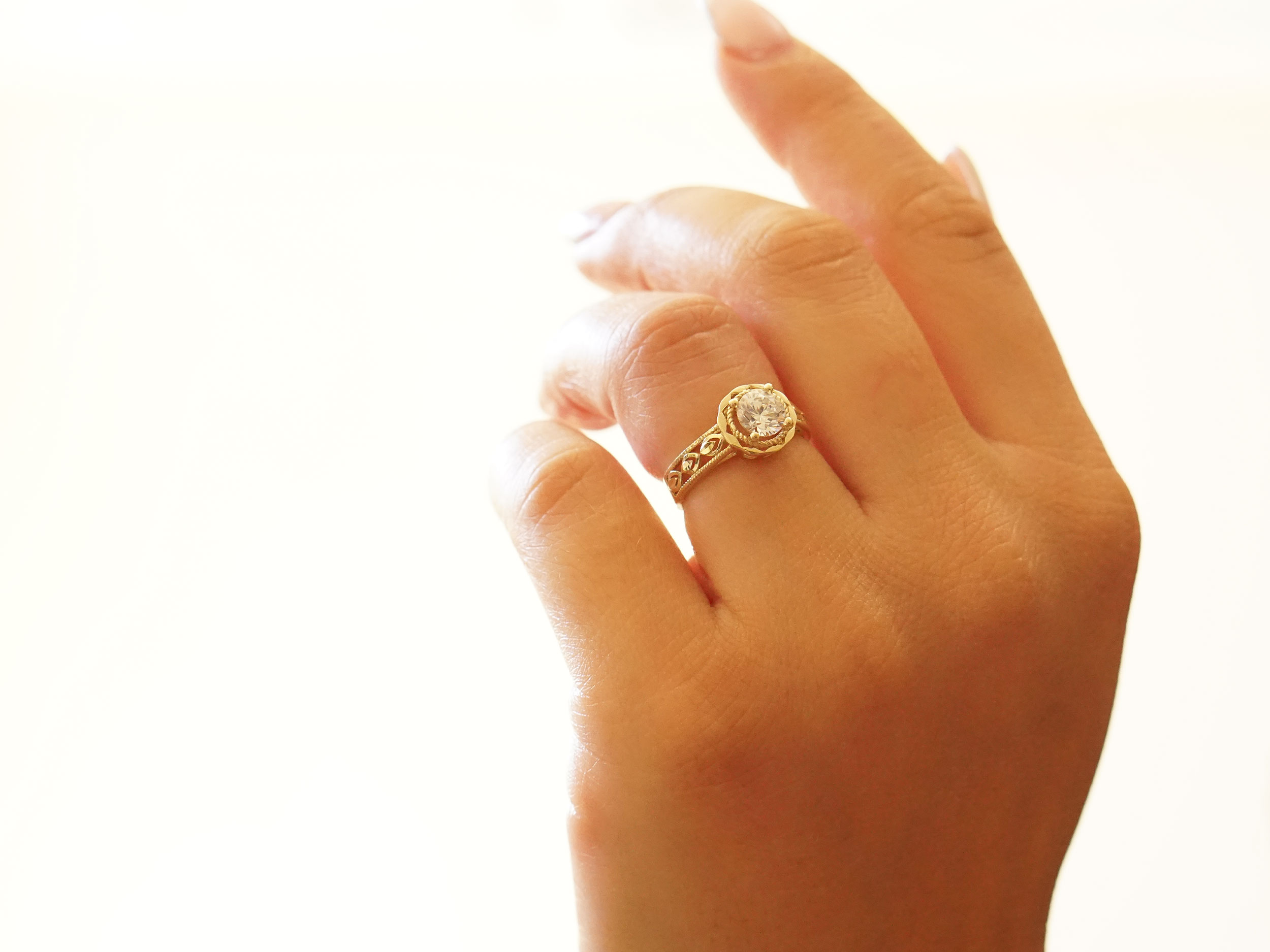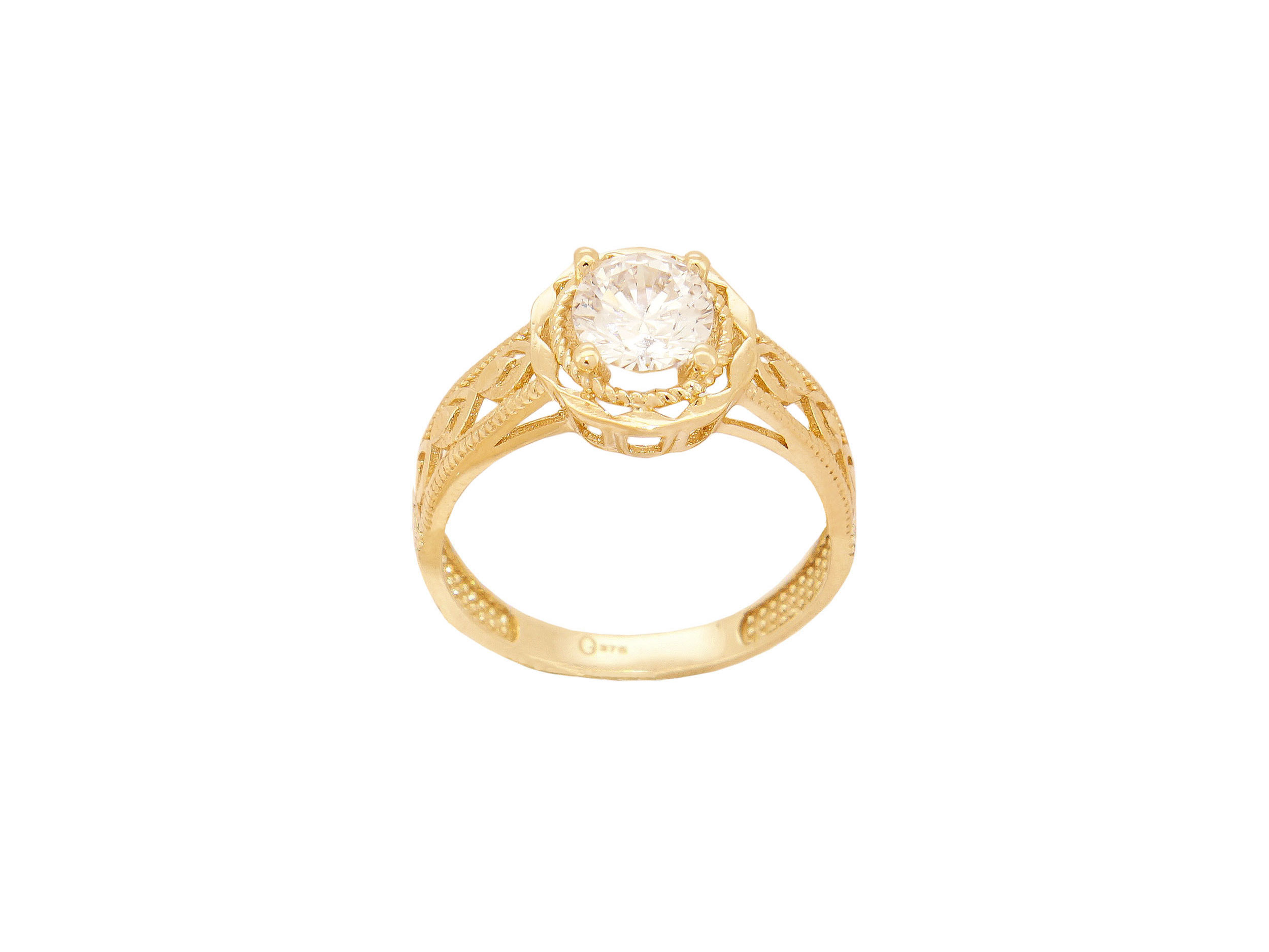 Δαχτυλίδι χρυσό μονόπετρο 9 Καρατίων, με λευκή cubic ζιργκόν πέτρα και λαμπερό διαμαντάρισμα. Ένα ιδιαίτερο κομμάτι, που συνδυάζει την κλασική κομψότητα με τη vintage αισθητική.