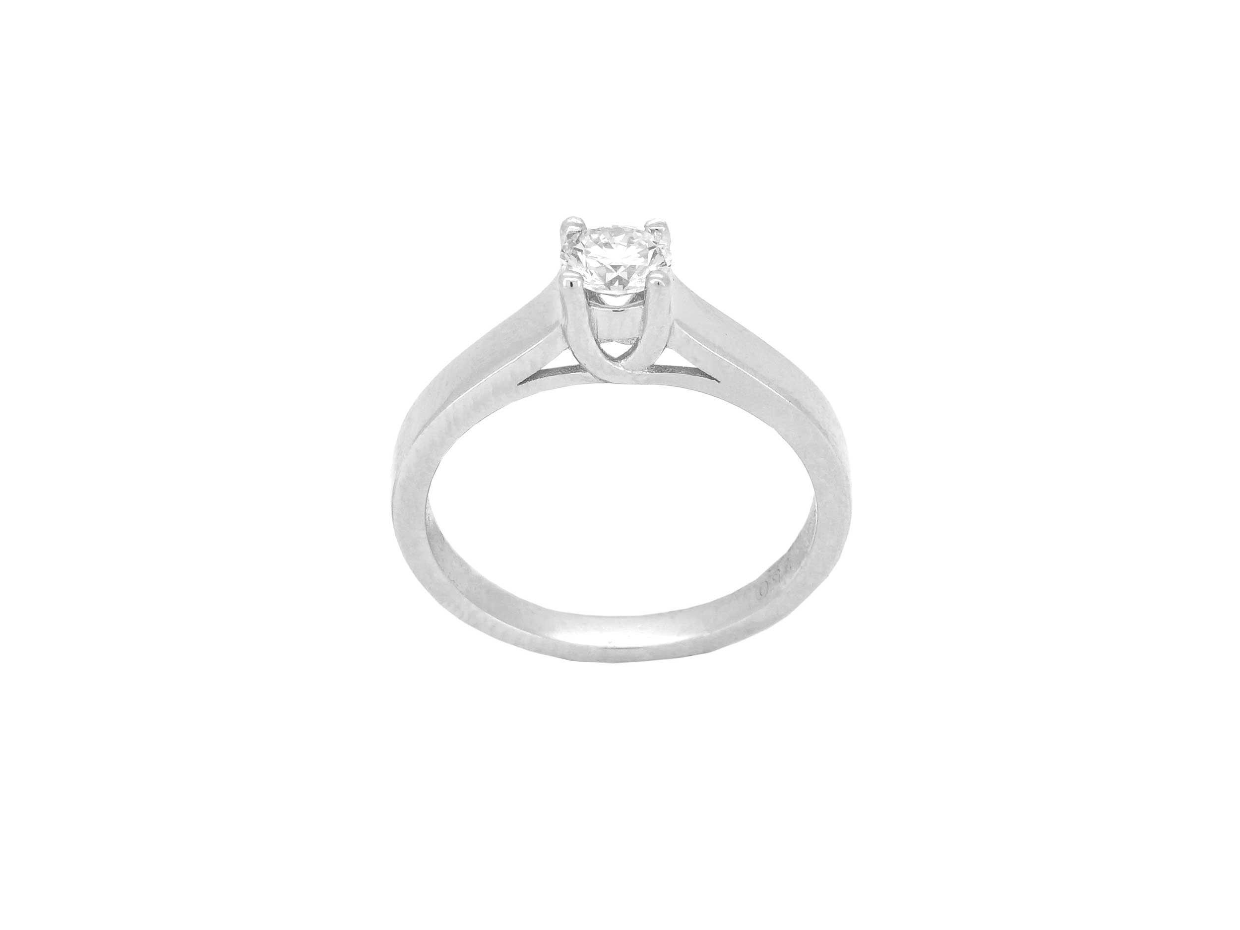 Δαχτυλίδι με διαμάντι μονόπετρο, σε λευκόχρυσο 18 Καρατίων. Ένα εντυπωσιακό δαχτυλίδι με διαχρονική λάμψη και κομψότητα, σχεδιασμένο για να αναδεικνύει το κεντρικό διαμάντι κοπής round biinant. Ιδανική επιλογή για πρόταση γάμου. Περιλαμβάνεται πιστοποιητικό γνησιότητας.