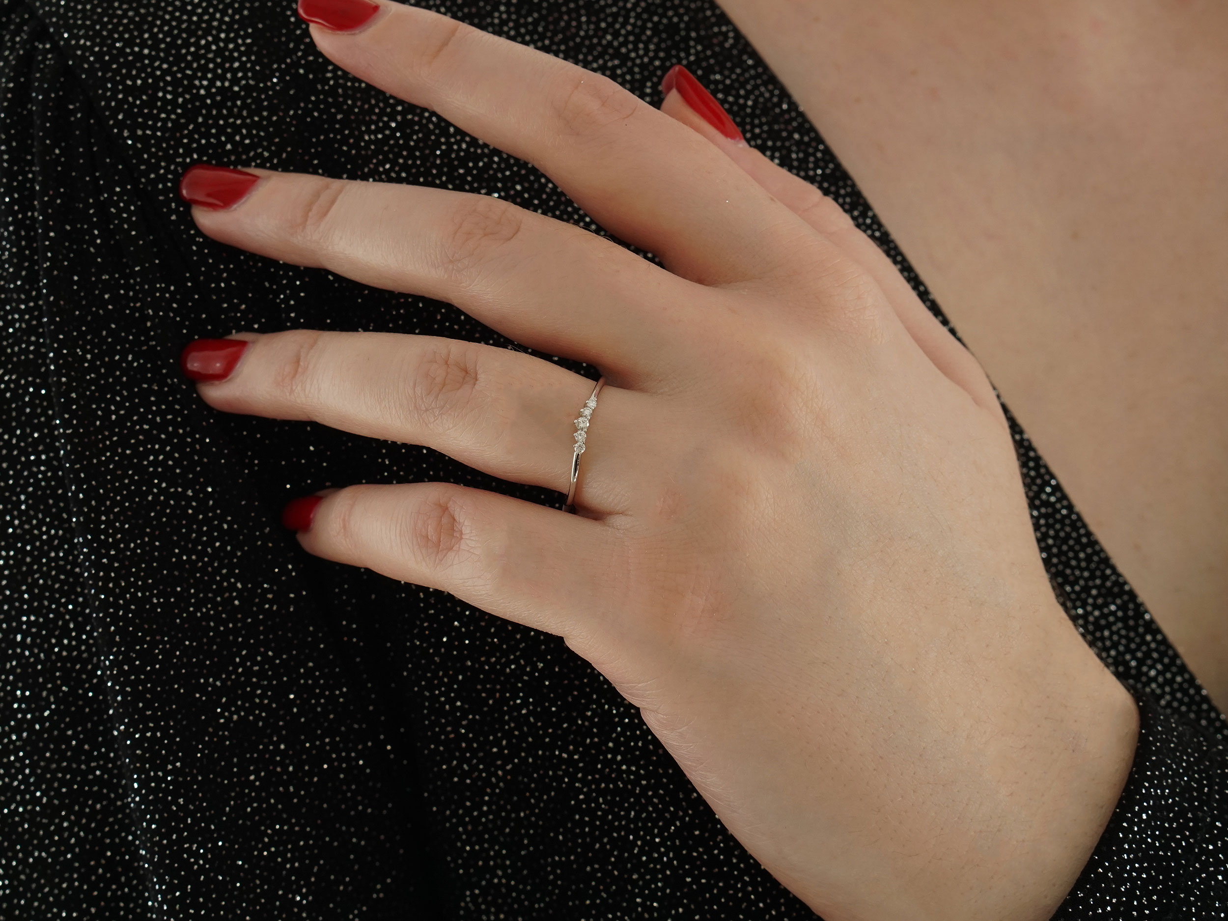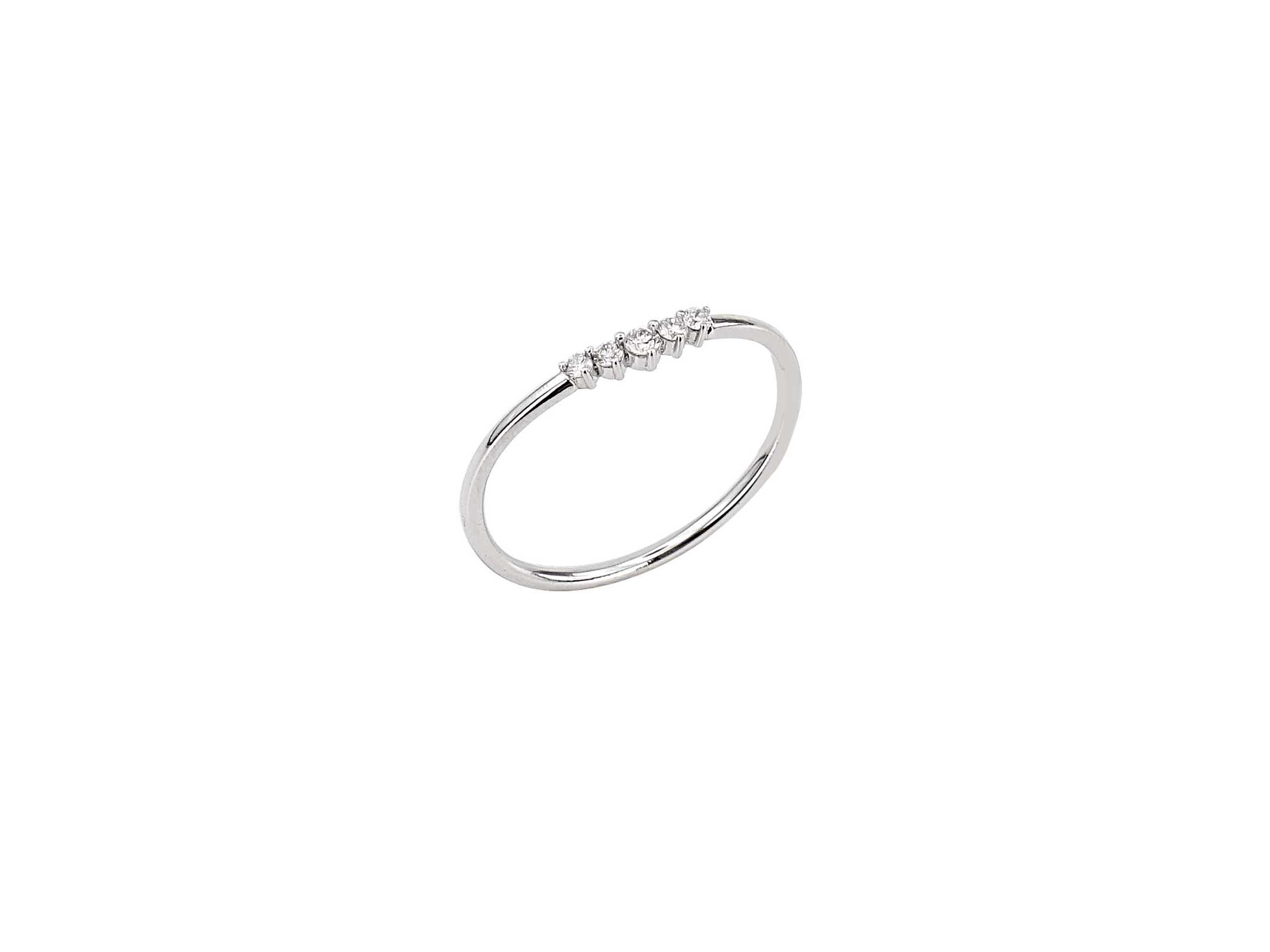 Δαχτυλίδι με διαμάντια σε λευκόχρυσο 14Κ . Είναι διακοσμημένο με 5 διαμάντια κοπής μπριγιάν στη σειρά και έχει λαμπερό λουστρέ φινίρισμα. Ένα υπέροχο δαχτυλίδι, με minimal σχεδίαση, που μπορεί να φορεθεί κάθε στιγμή της ημέρας!