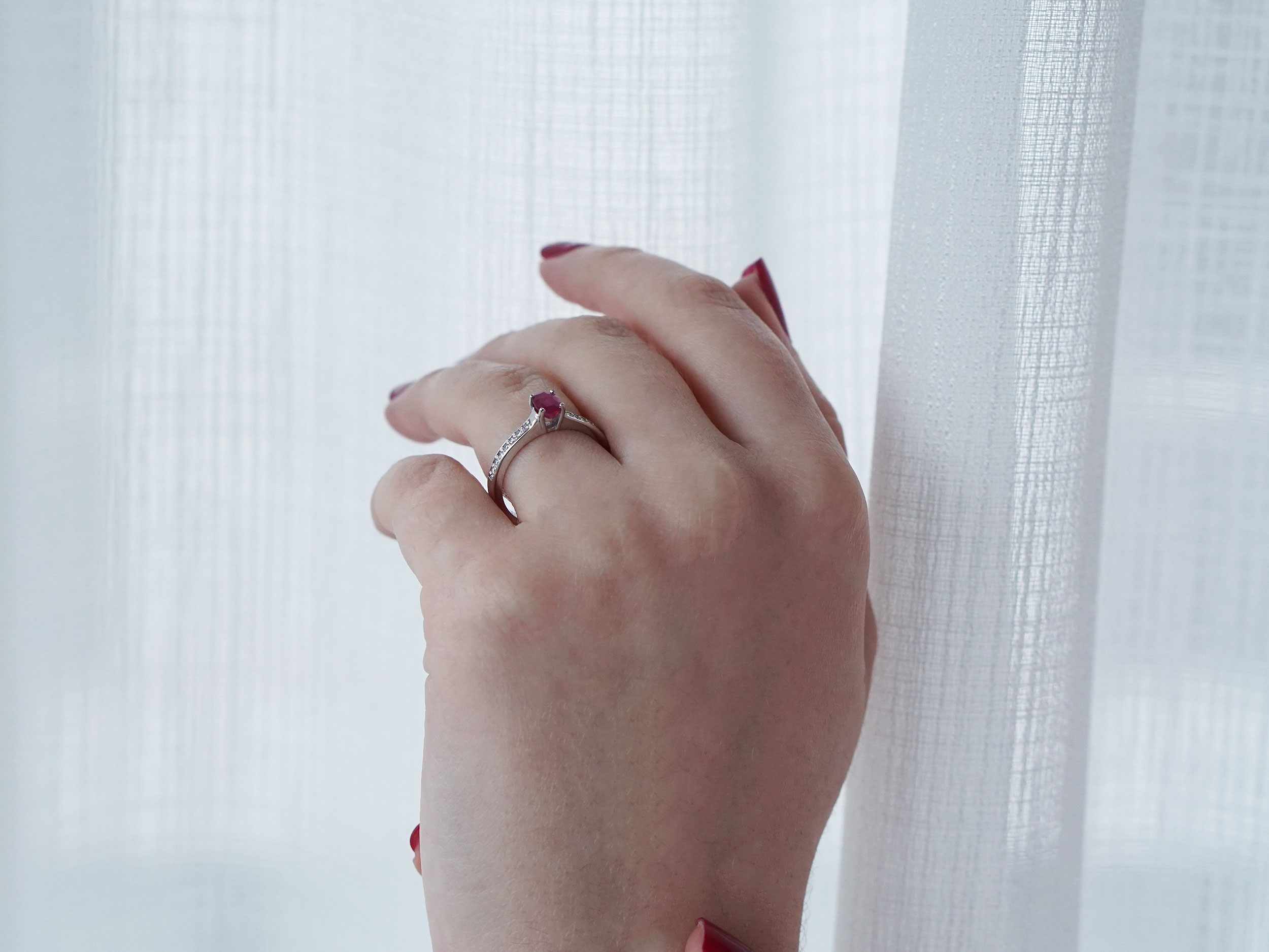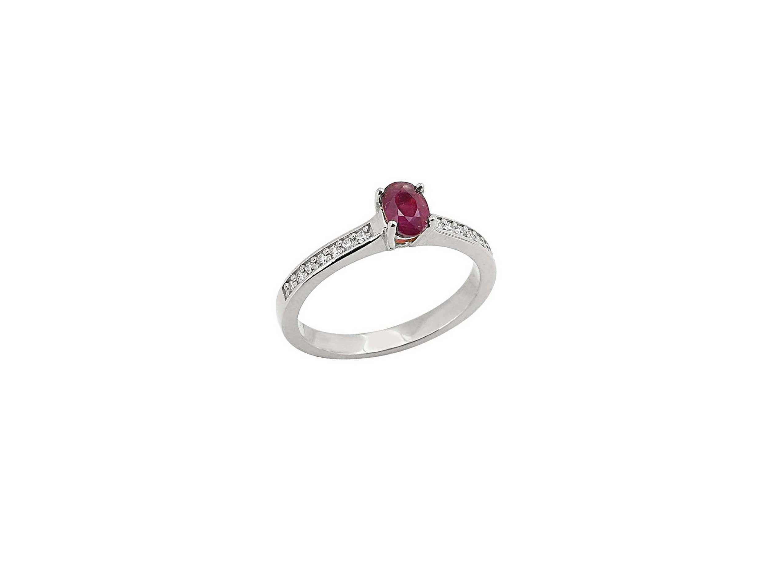 Δαχτυλίδι με διαμάντια κοπής brilliant και ρουμπίνι. Είναι κατασκευασμένο από λευκόχρυσο 18 Καρατίων με λουστρέ φινίρισμα. Μαγνητίστε τα βλέμματα με το μοναδικό ρουμπίνι, προσθέτοντας μια δόση πολυτέλειας και φινέτσας σε κάθε σας εμφάνιση!
