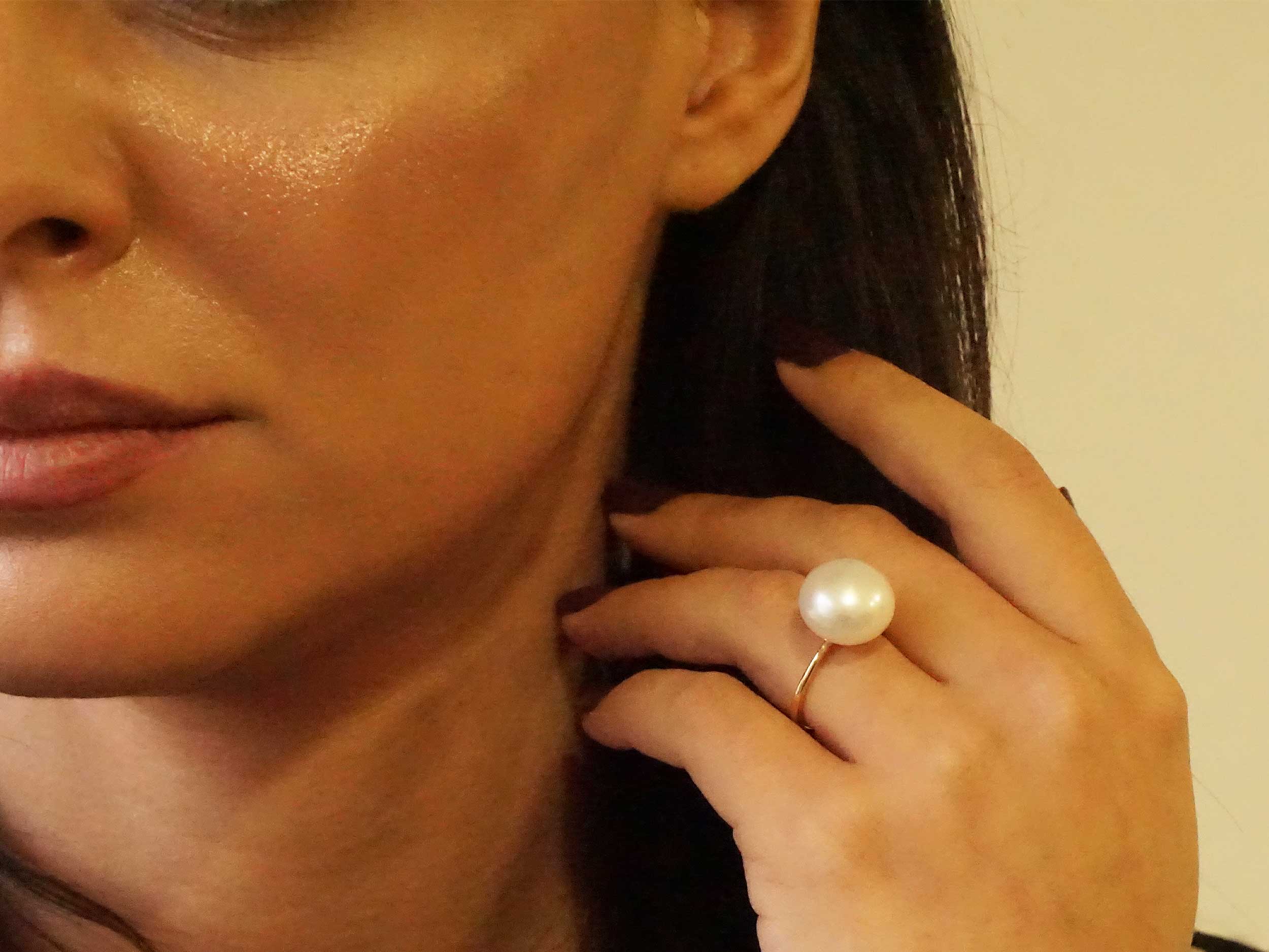 Κομψό δαχτυλίδι fresh water pearl σε χρυσό 14 Καρατίων. Η ποιότητα του μαργαριταριού είναι 6Α με διάμετρο 13 – 13,5 mm και το σχήμα του πομπέ (Button). Ένα υπέροχο κόσμημα, που θα σας κάνει να ξεχωρίσετε στις καθημερινές σας εξόδους!