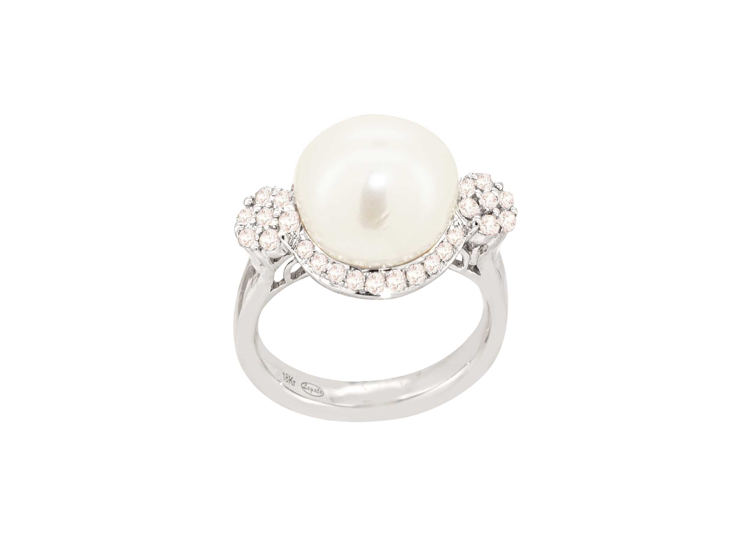 Δαχτυλίδι Με Μαργαριτάρι Και Διαμάντια Σε Λευκόχρυσο 18Κ (κωδ: GR2030)