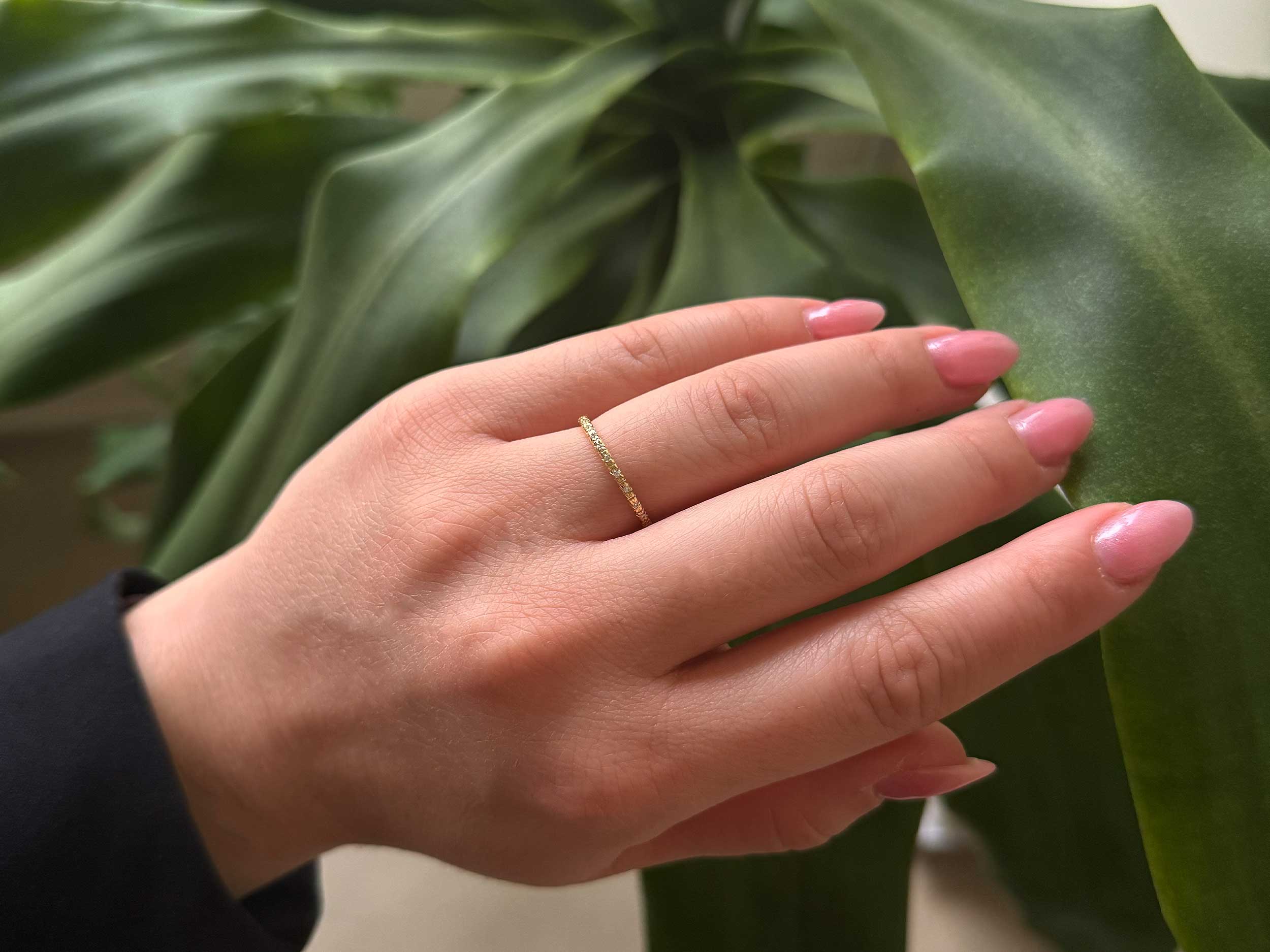Κομψό δαχτυλίδι ολόβερο χρυσό 18 Καρατίων, με λουστρέ φινίρισμα. Κοσμείται με λαμπερά διαμάντια round brilliant. Μπορείτε να το συνδυάσετε με ένα μονόπετρο ή με άλλα δαχτυλίδια για να δημιουργήσετε ένα stylish look!