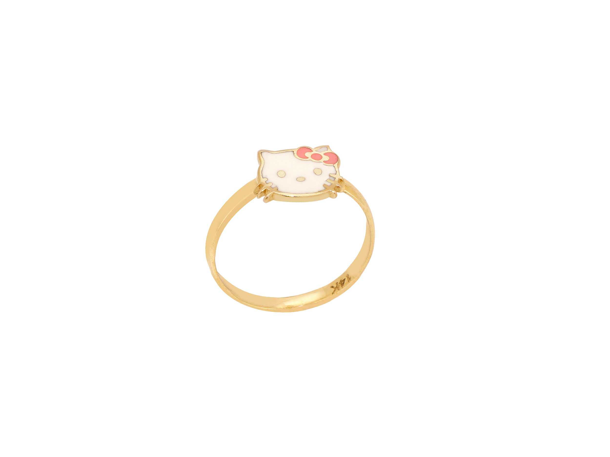 Δαχτυλίδι παιδικό χρυσό γατούλα 14 Καρατίων. Έχει λουστρέ φινίρισμα και κοσμείται με ροζ και λευκό σμάλτο. Ένα υπέροχο δαχτυλίδι, σε χαριτωμένο σχέδιο, που το κοριτσάκι σας θα λατρέψει!