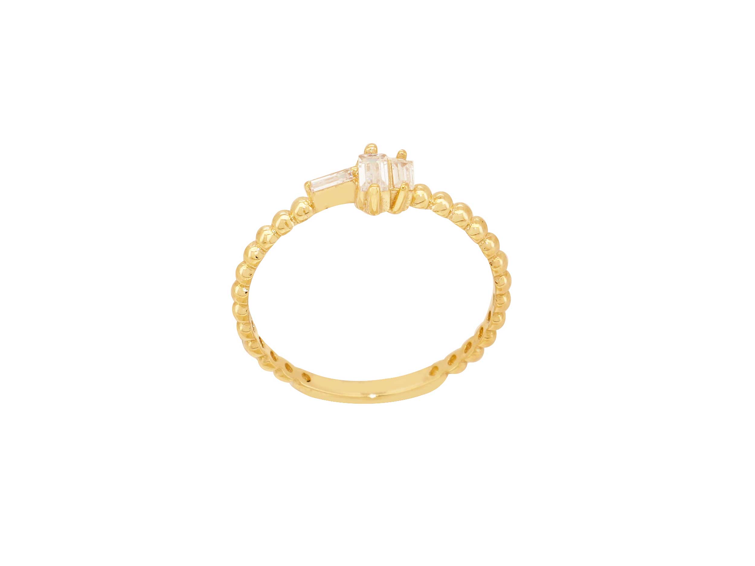 Δαχτυλίδι με πέτρες baguette ζιργκόν σε λευκό χρώμα, κατασκευασμένο από χρυσό 8 Καρατίων. Έχει με λουστρέ φινίρισμα και υπέροχο ανάγλυφο σχέδιο στη γάμπα. Η κομψή και minimal σχεδίασή του το καθιστά ιδανικό για μια casual εμφάνιση!