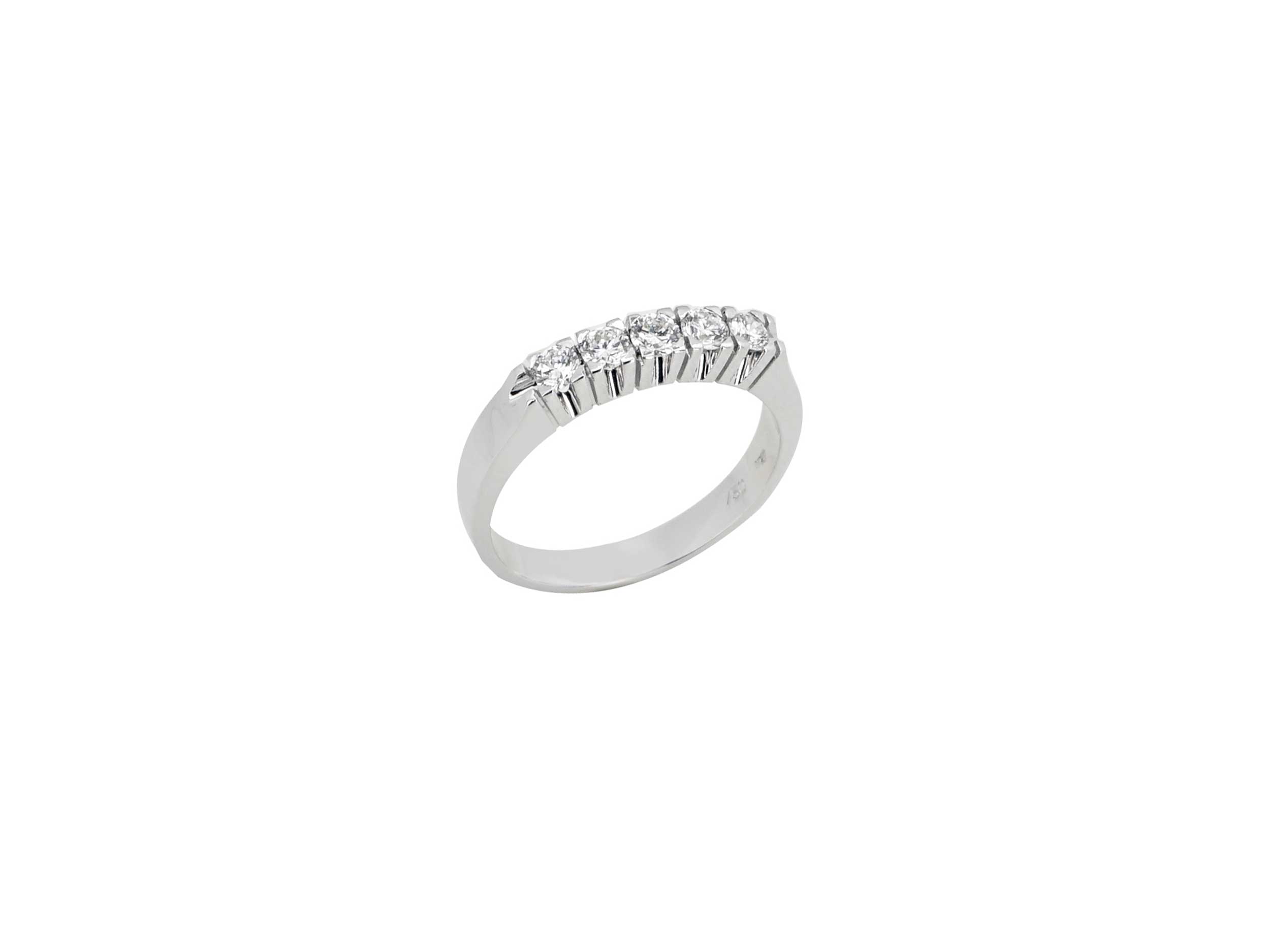 Δαχτυλίδι σειρέ με μπριγιάν, σε λευκόχρυσο 18 Καρατίων. Ένα ιδιαίτερα κομψό και εντυπωσιακό κόσμημα με 5 λαμπερά διαμάντια κοπής round brilliant και υπέροχο λουστρέ φινίρισμα.