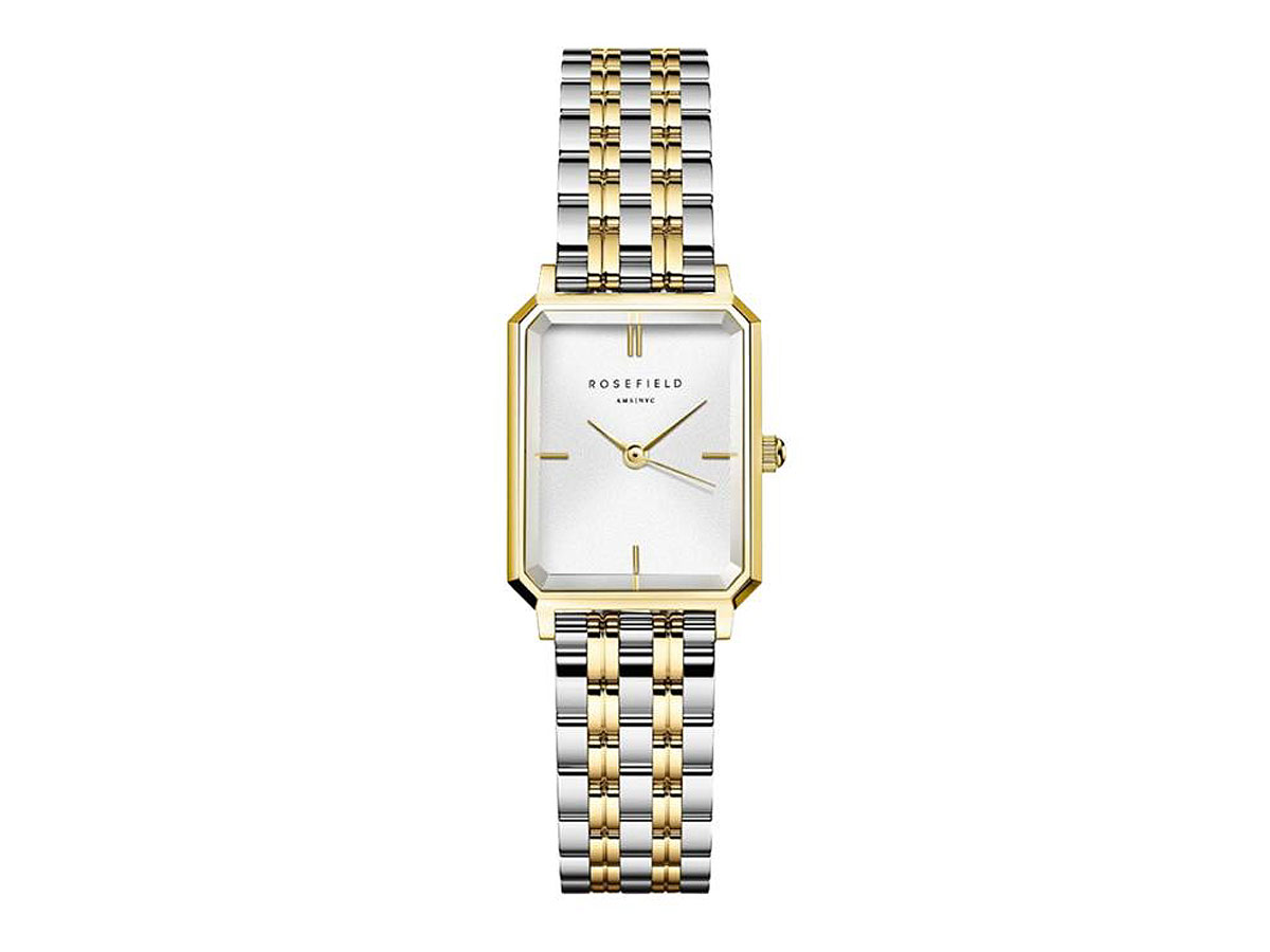 Ρολόι Rosefield Octagon XS (OWDSG-062). Διαθέτει δίχρωμο μπρασελέ από ανοξείδωτο ατσάλι, κούμπωμα ασφαλείας και κομψό καντράν με επίχρυσους δείκτες.