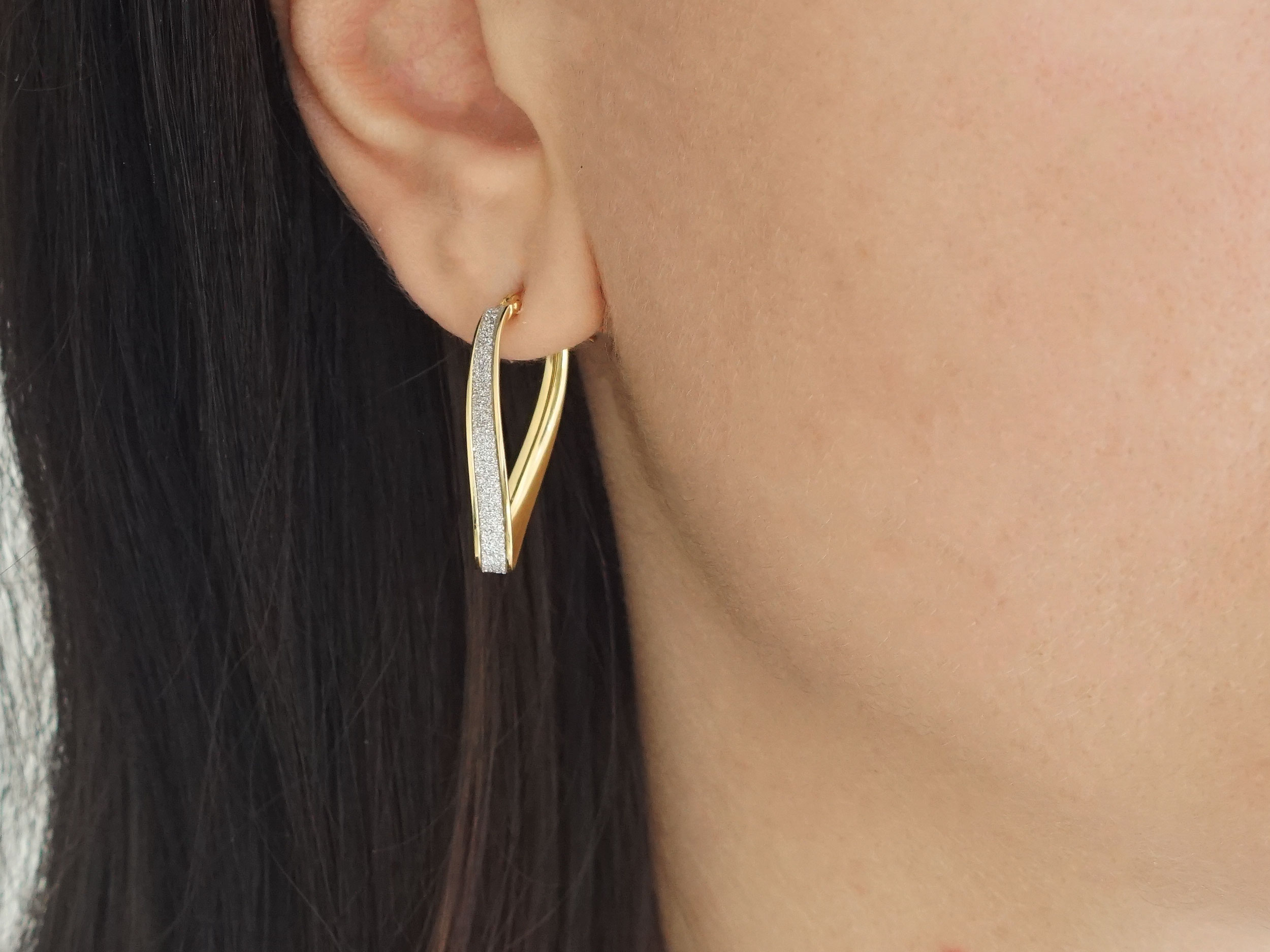 Δίχρωμοι Κρίκοι Χρυσοί 14Κ Με Διαμαντάρισμα (κωδ: GE769)