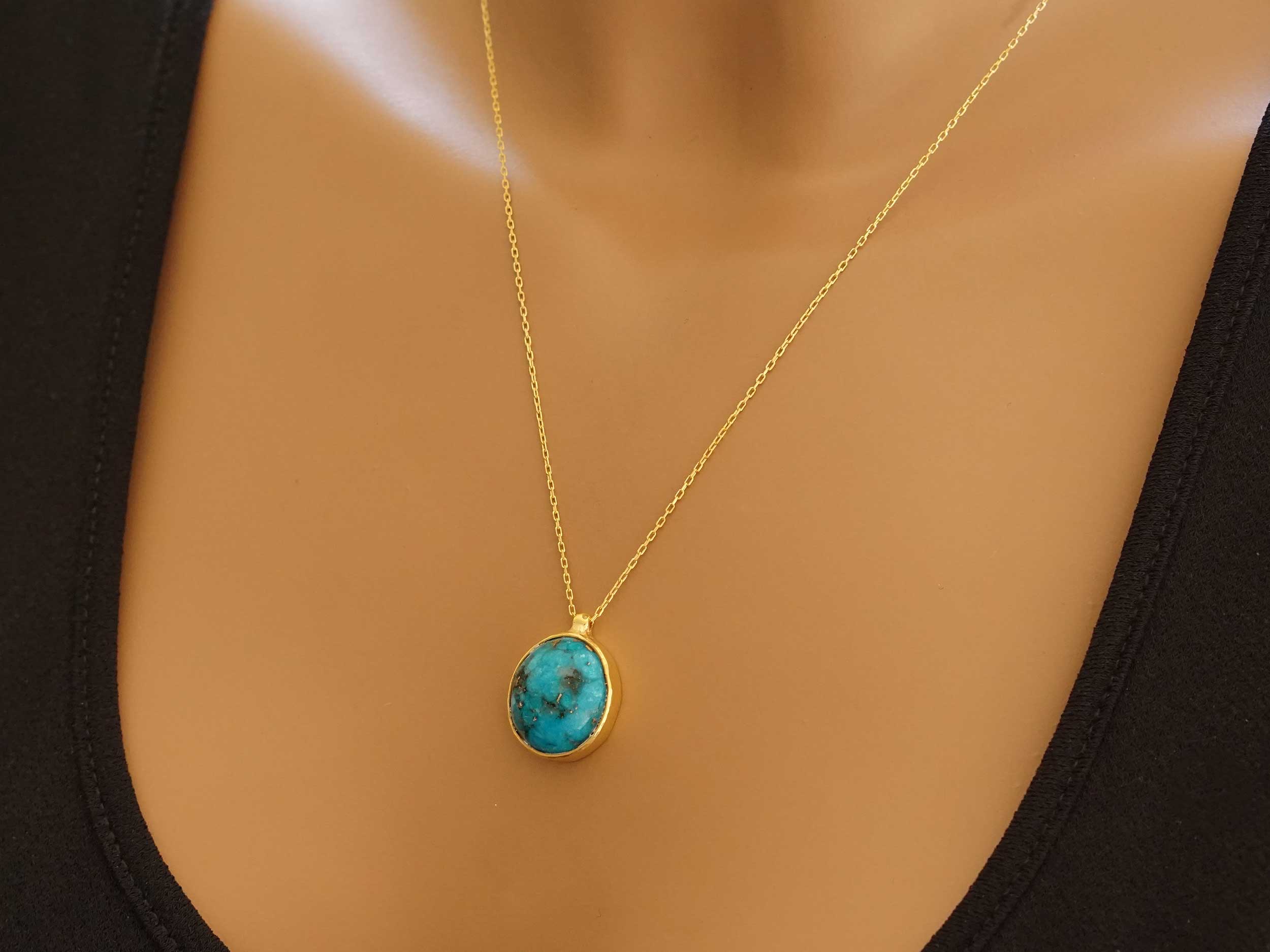 Μενταγιόν με τιρκουάζ πέτρα, σε ασήμι επιχρυσωμένο 925. Ένα εντυπωσιακό μενταγιόν με υπέροχη πέτρα τιρκουάζ και επίχρυση αλυσίδα που αυξομειώνεται για να την προσαρμόζετε στο μήκος που επιθυμείτε.