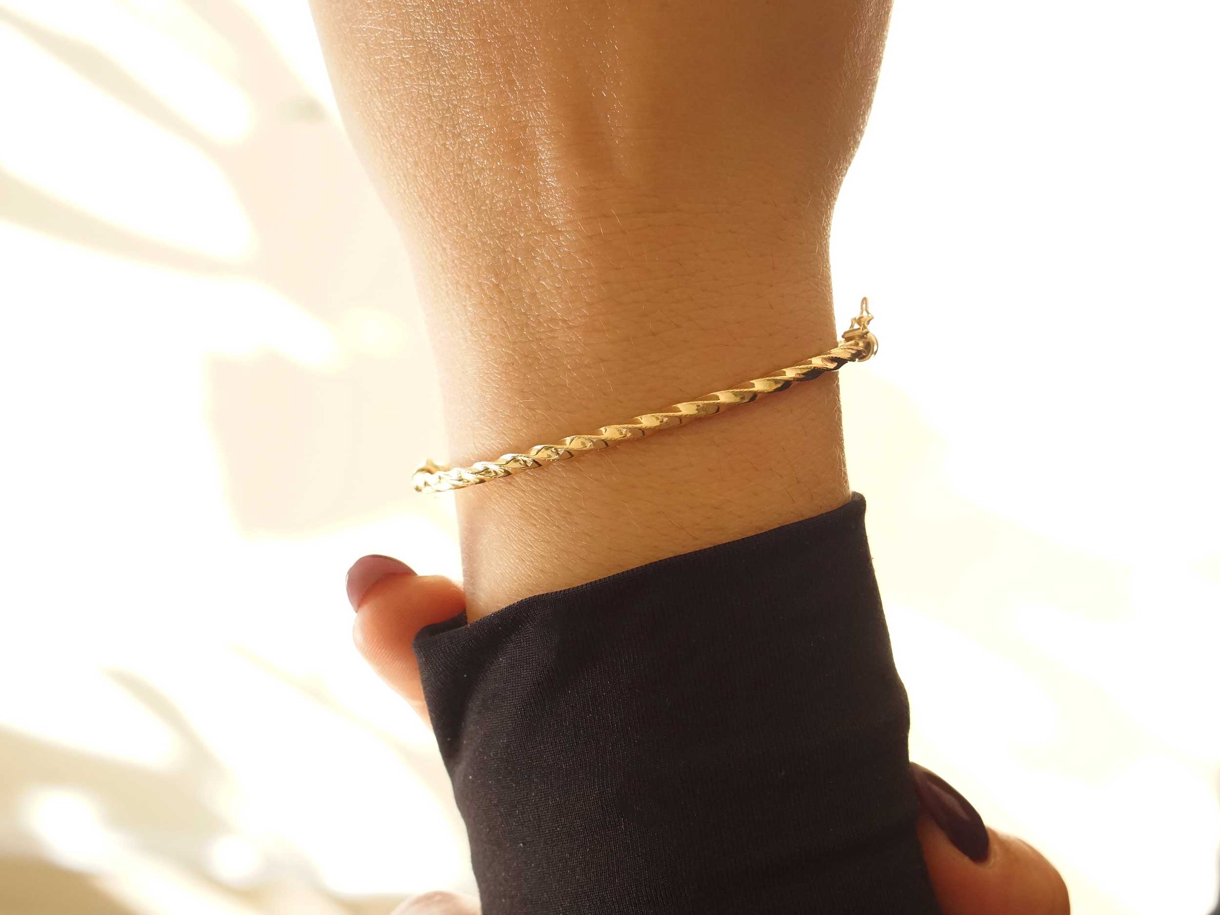 Γυναικεία επιχρυσωμένη χειροπέδα βραχιόλι, με στριφτό σχέδιο, κατασκευασμένη από ασήμι 925. Έχει κίτρινο χρώμα μετάλλου και λουστρέ φινίρισμα. Ένα υπέροχο, μίνιμαλ βραχιόλι που θα προσθέσει μια μοντέρνα και κομψή πινελιά στα casual outfit σας. Μπορεί να φορεθεί μόνη της ή σε συνδυασμό με άλλα βραχιόλια για να δημιουργηθεί ένα εντυπωσιακό layer.