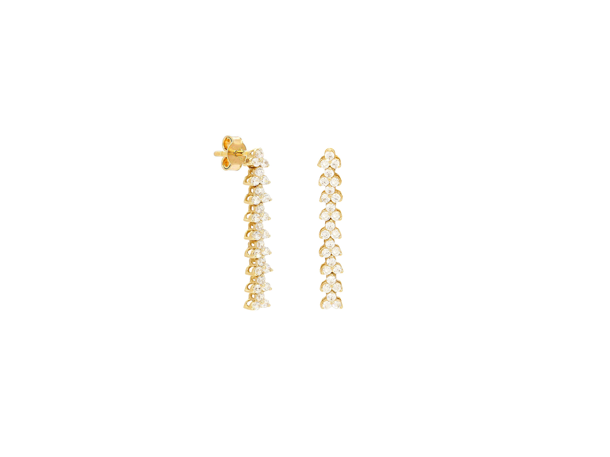 Γυναικεία χρυσά σκουλαρίκια 14Κ.  Εντυπωσιακά κρεμαστά σκουλαρίκια διακοσμημένα από λαμπερές cubic ζιργκόν πέτρες και διαθέτουν λουστρέ φινίρισμα. Είναι ιδανικά για επίσημες περιστάσεις, προσδίδοντας μια αίσθηση πολυτέλειας και διαχρονικής ομορφιάς.