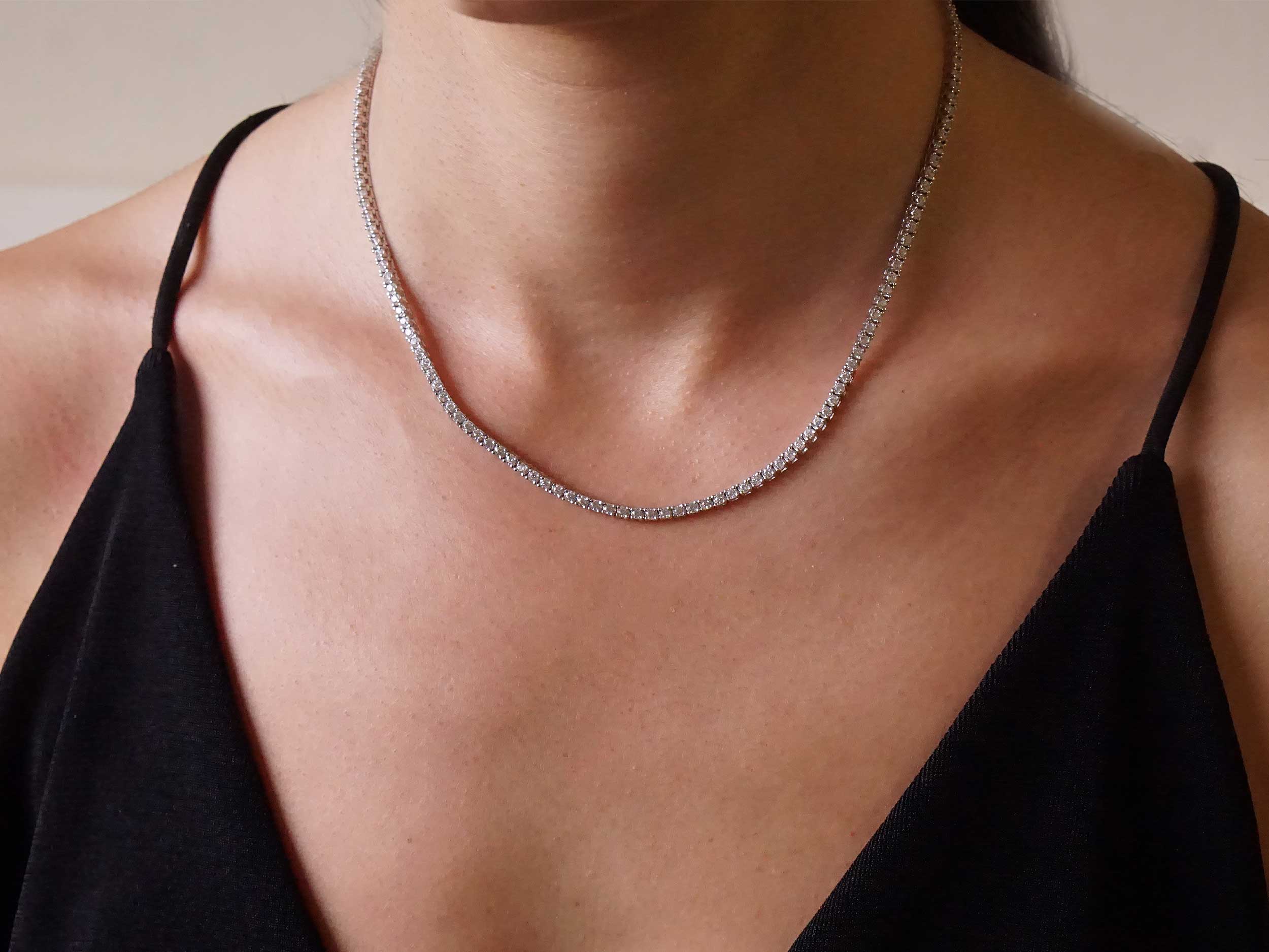 Λαμπερό κολιέ ριβιέρα, σε ασήμι 925. Διαθέτει λουστρέ φινίρισμα μετάλλου και cubic ζιργκόν σε λευκή απόχρωση, 53 σε αριθμό. Μοναδικό και διαχρονικό κόσμημα ιδανικό για να φορεθεί σε κάθε καλή περίσταση που θέλετε να παρευρεθείτε!