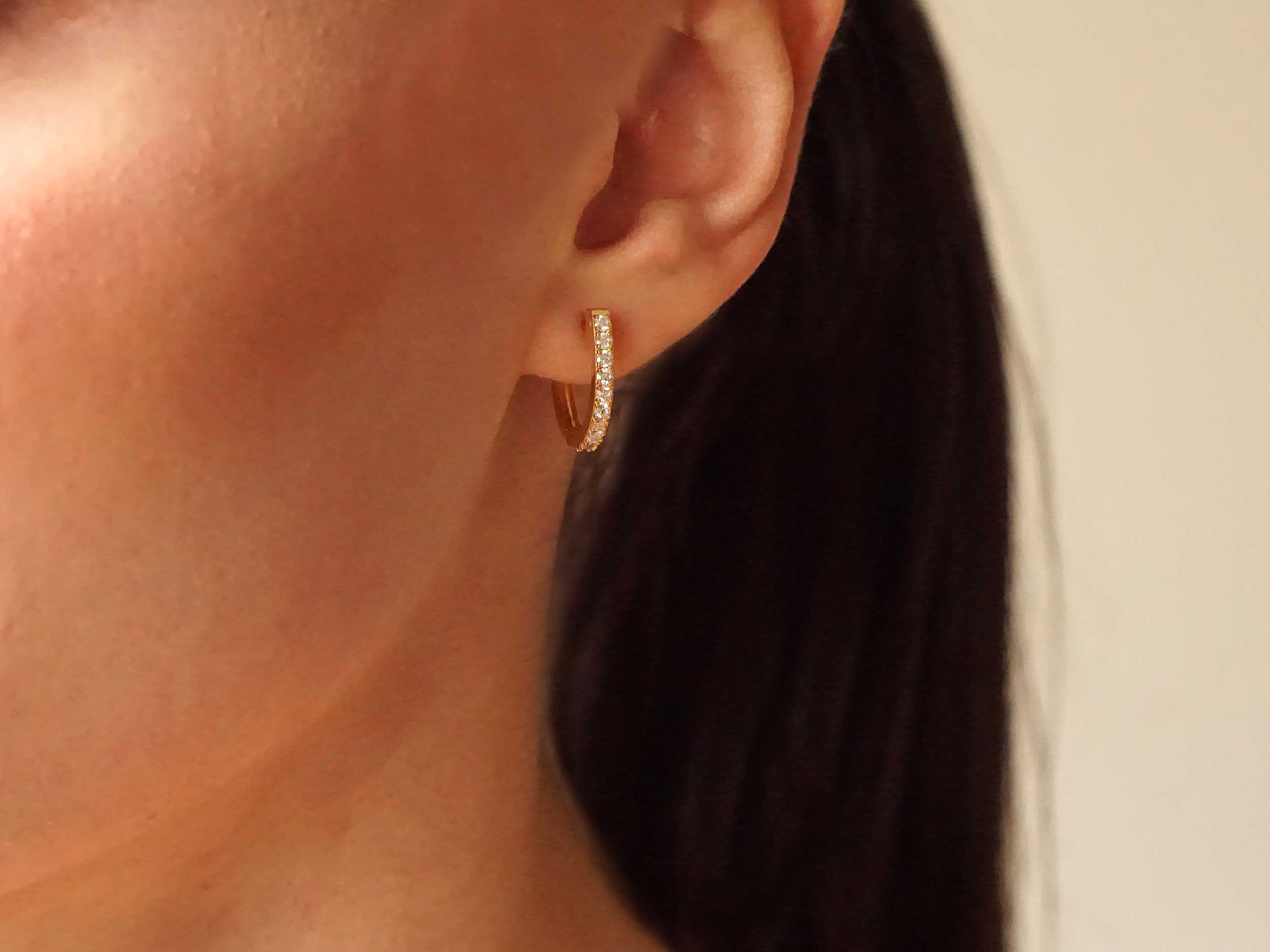 Κρικάκια με μπριγιάν, σε χρυσό 18 Καράτια, που θα λατρεύετε να φοράτε! Ένα κομψό ζευγάρι σκουλαρίκια, διακοσμημένα το καθένα με 10 λαμπερά διαμάντια round brilliant cut.