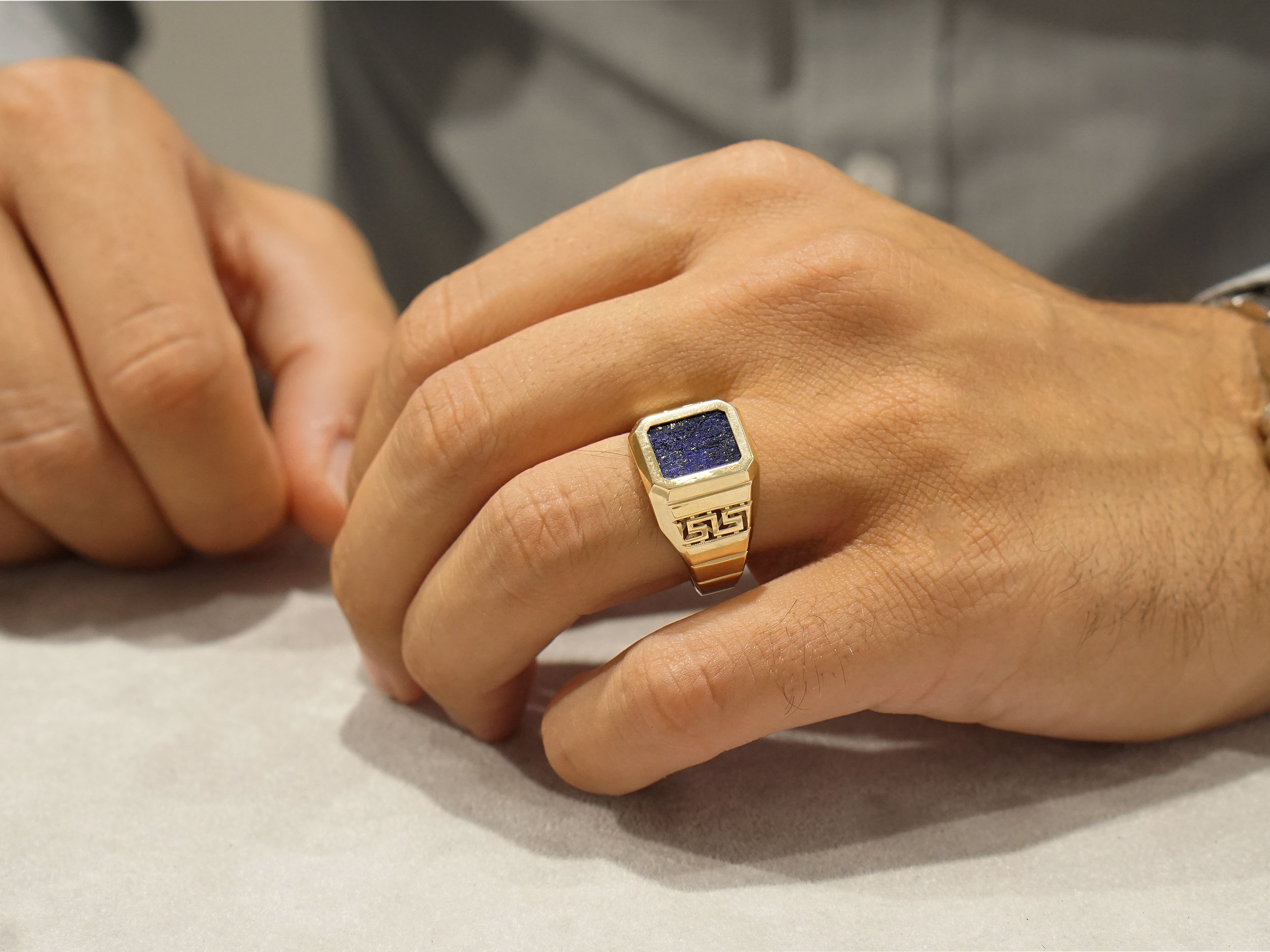 Lapis Lazuli Δαχτυλίδι Ανδρικό Σε Χρυσό 14Κ (κωδ: GR1937)