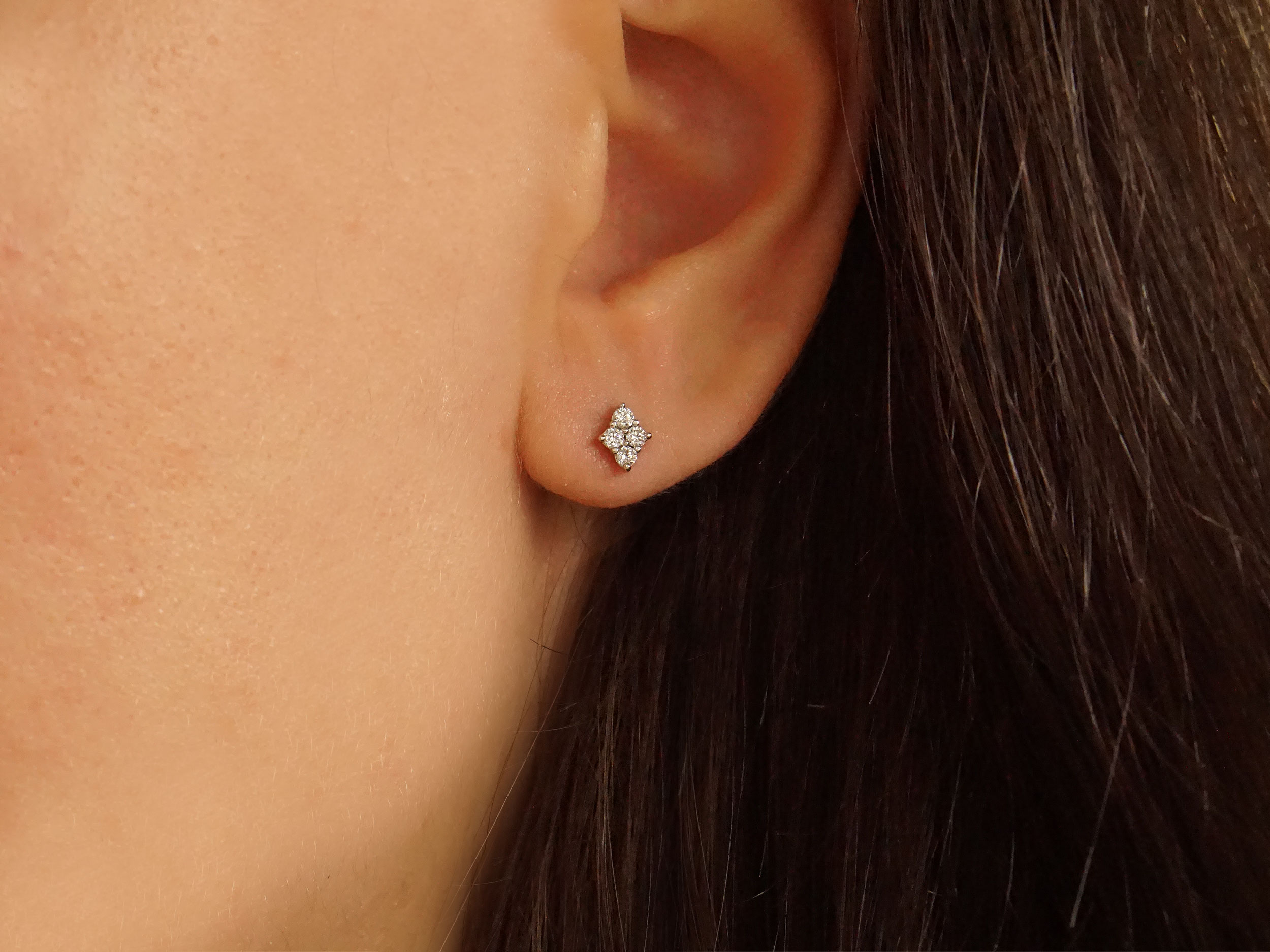 Σκουλαρίκια ρόμβοι σε λευκόχρυσο 9 Καράτια. Κομψά και μίνιμαλ σκουλαρίκια, διακοσμημένα το καθένα με τέσσερις λευκές cubic ζιργκόν πέτρες που προσθέτουν διακριτική λάμψη. Επιλέξτε τα για τις casual εμφανίσεις σας!