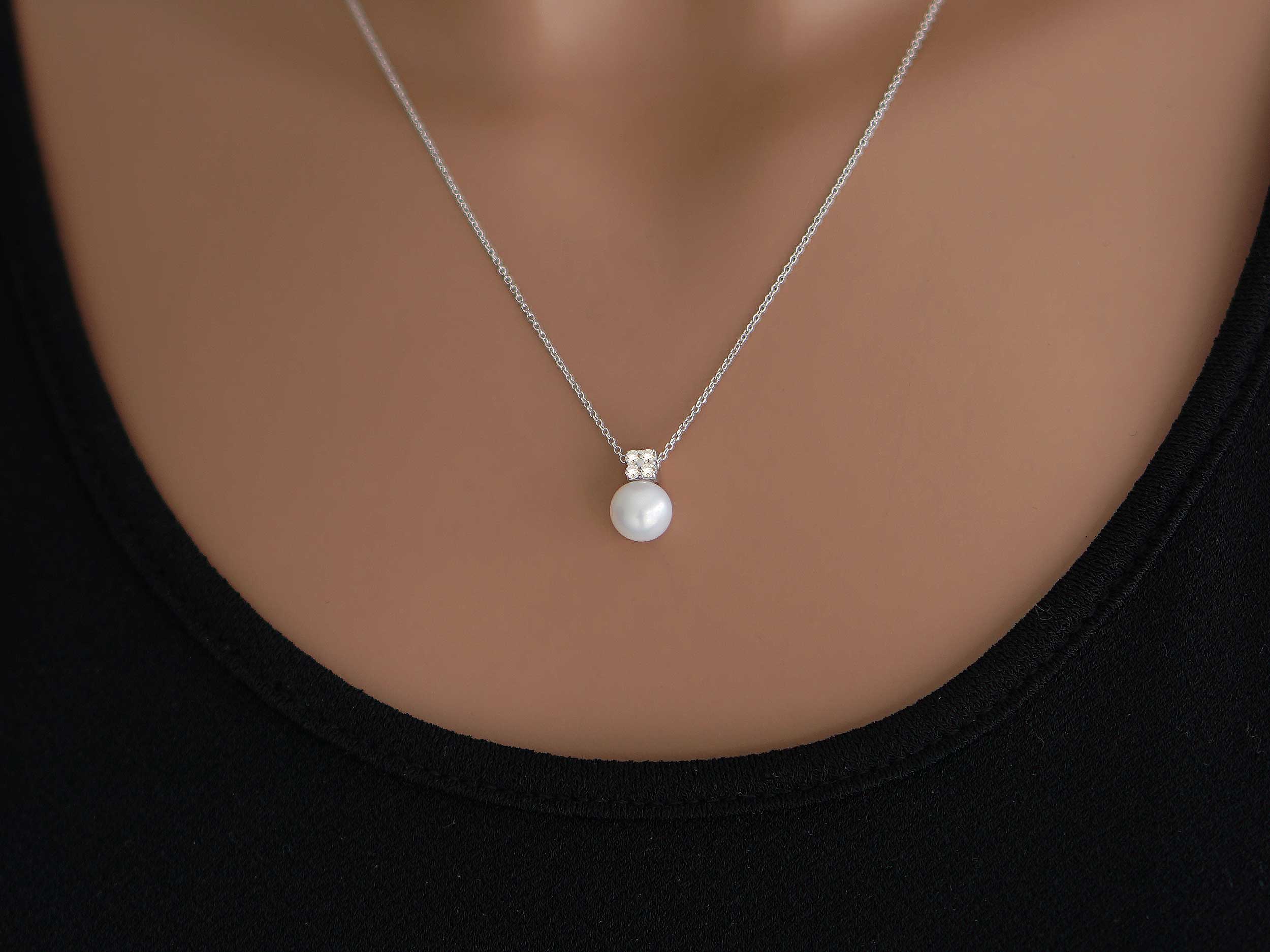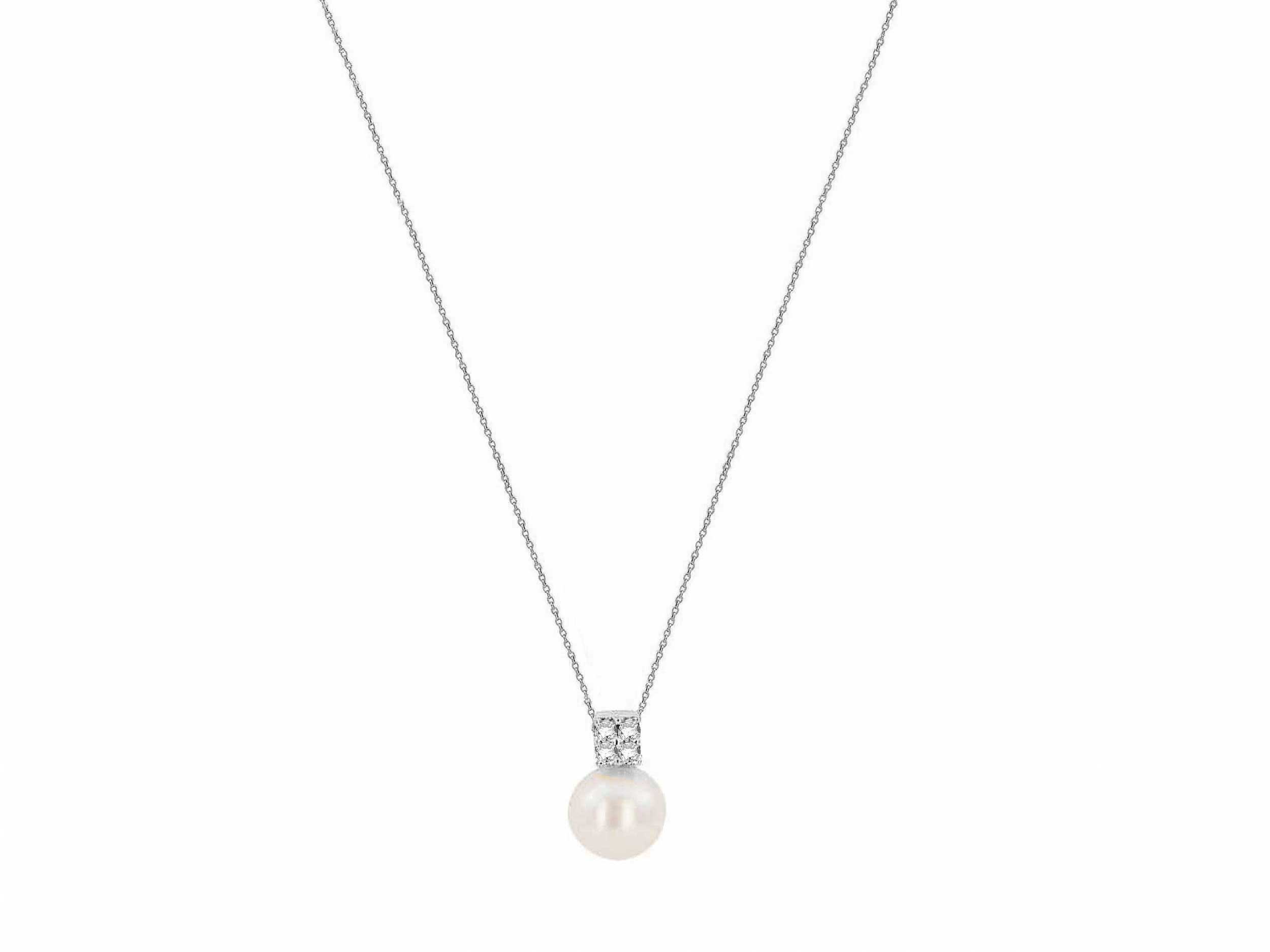 Λευκόχρυσο Μενταγιόν Με Μπριγιάν Μαργαριτάρι Και Αλυσίδα 18Κ (κωδ: GM1283)