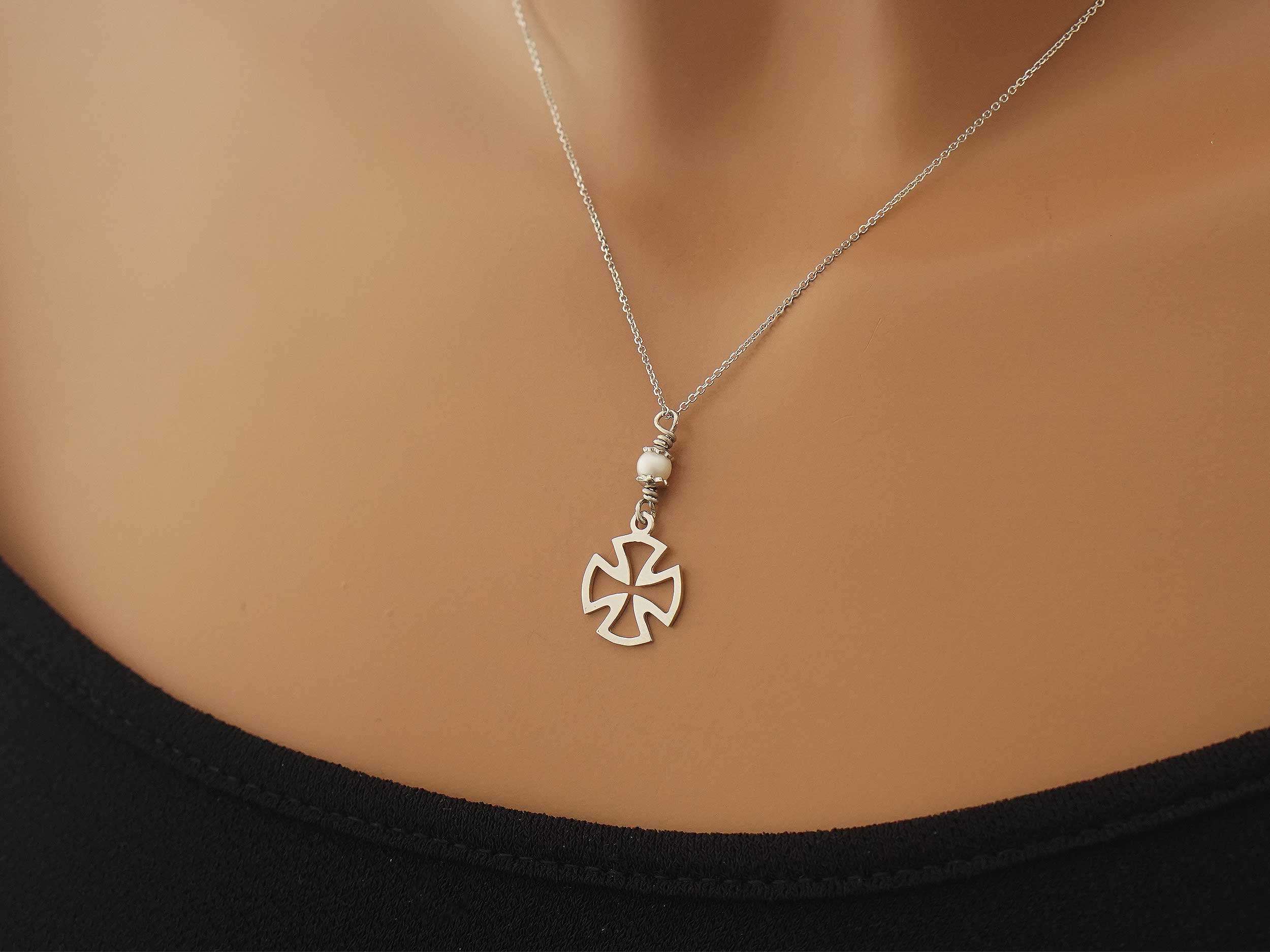 Λευκόχρυσος σταυρός με μαργαριτάρι λευκό και αλυσίδα 14 Καρατίων. Το συνολικό μήκος του είναι 1,40 cm. Ένα κομψό διάτρητο σταυρουδάκι που θα φοράτε καθημερινά!