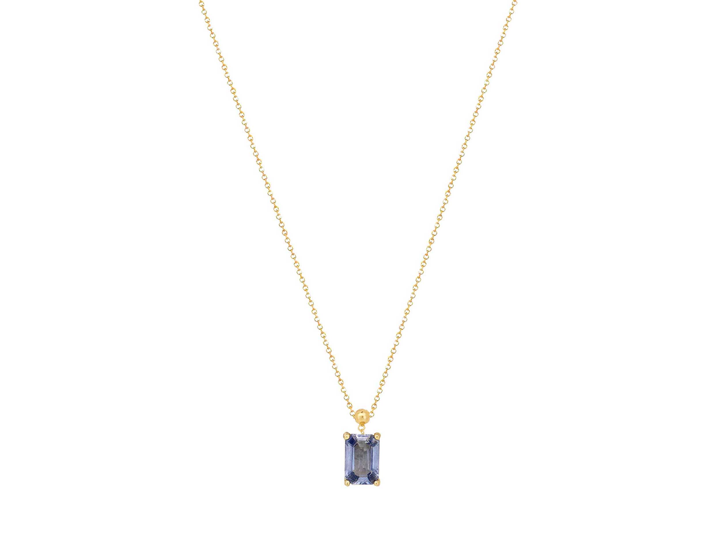 Μενταγιόν χρυσό με ζαφείρι και αλυσίδα, 18 Καρατίων. Ένα μενταγιόν που ξεχωρίζει για τον minimal σχεδιασμό του, ιδανικό για να το φοράτε εύκολα προσθέτοντας λάμψη και κομψότητα σε κάθε σας εμφάνιση.