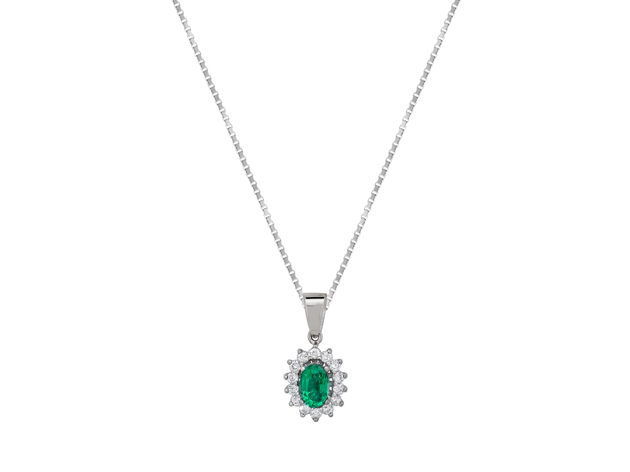 Μενταγιόν Ροζέτα Με Πράσινη Πέτρα Και Μπριγιάν Σε Λευκόχρυσο 18Κ (κωδ: GM1099)