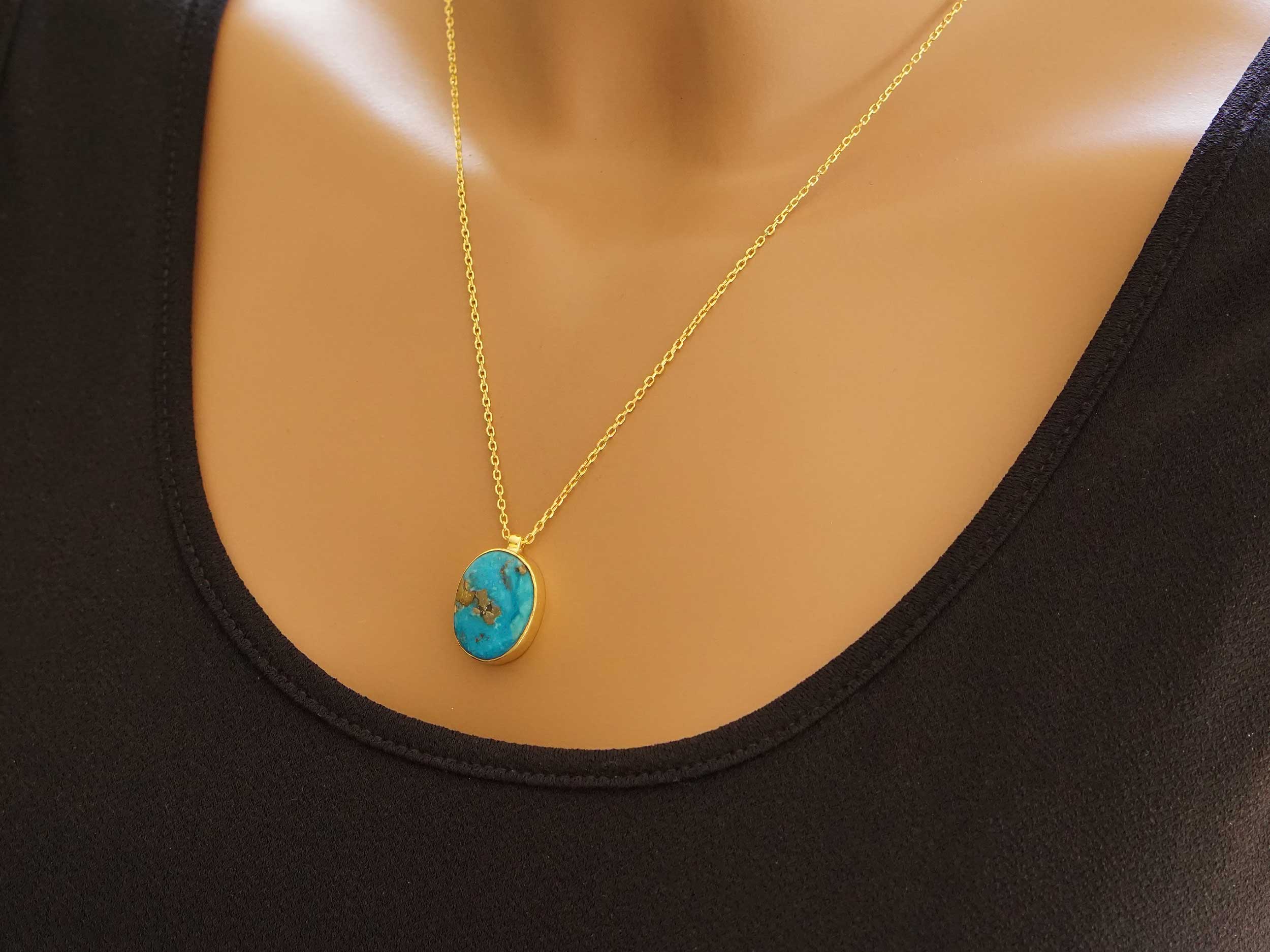 Επίχρυσο μενταγιόν με τιρκουάζ πέτρα, σε ασήμι 925. Μοναδικό μενταγιόν με εντυπωσιακή τιρκουάζ cabochon πέτρα και επίχρυση αλυσίδα που αυξομειώνεται για να την προσαρμόζετε στο μήκος που επιθυμείτε!
