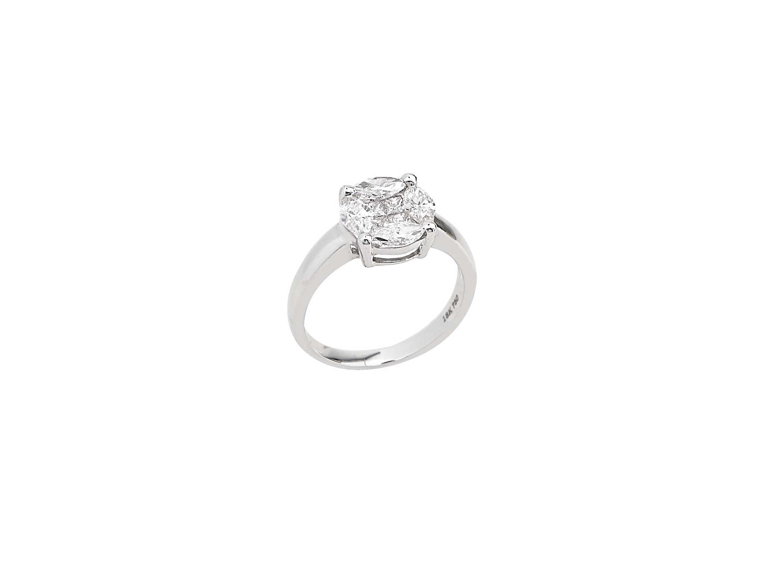 Ροζέτα Δαχτυλίδι Λευκόχρυσο 18Κ Με Διαμάντια Marquise Και Princess (κωδ: GR556)