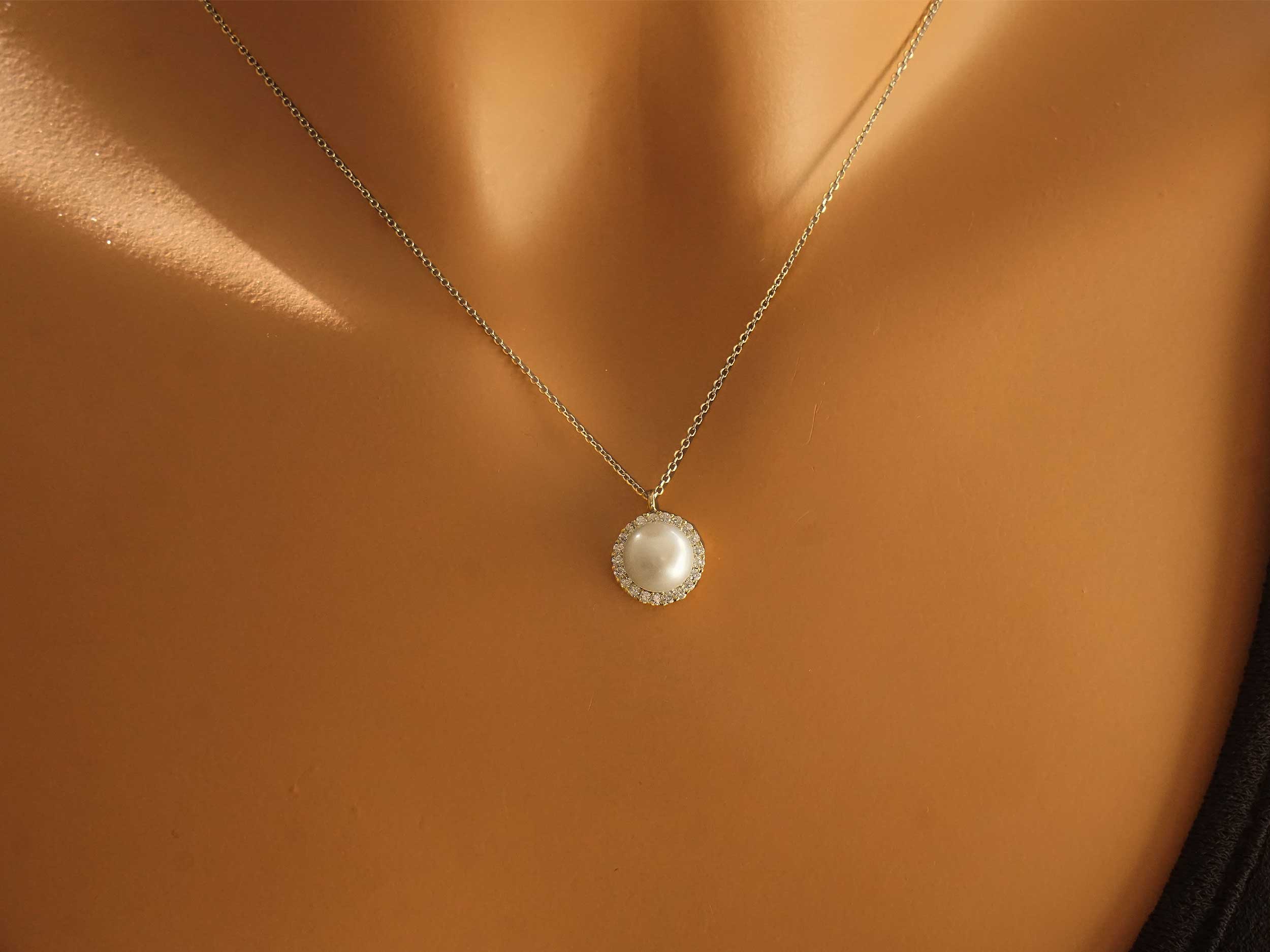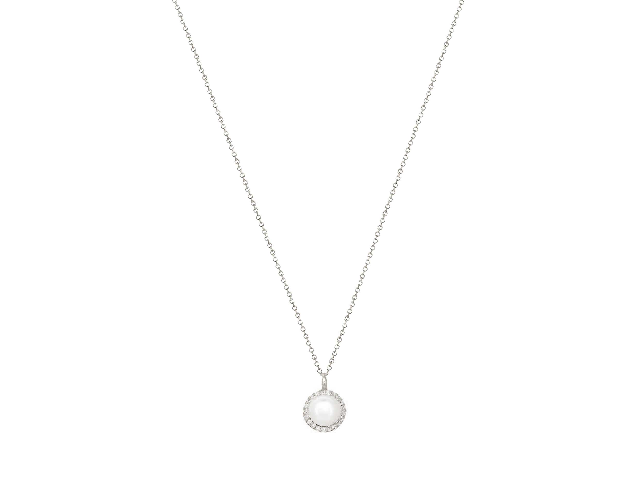 Μενταγιόν Ροζέτα Με Μαργαριτάρι Και Διαμάντια Σε Λευκόχρυσο 18Κ (κωδ: GM1248)