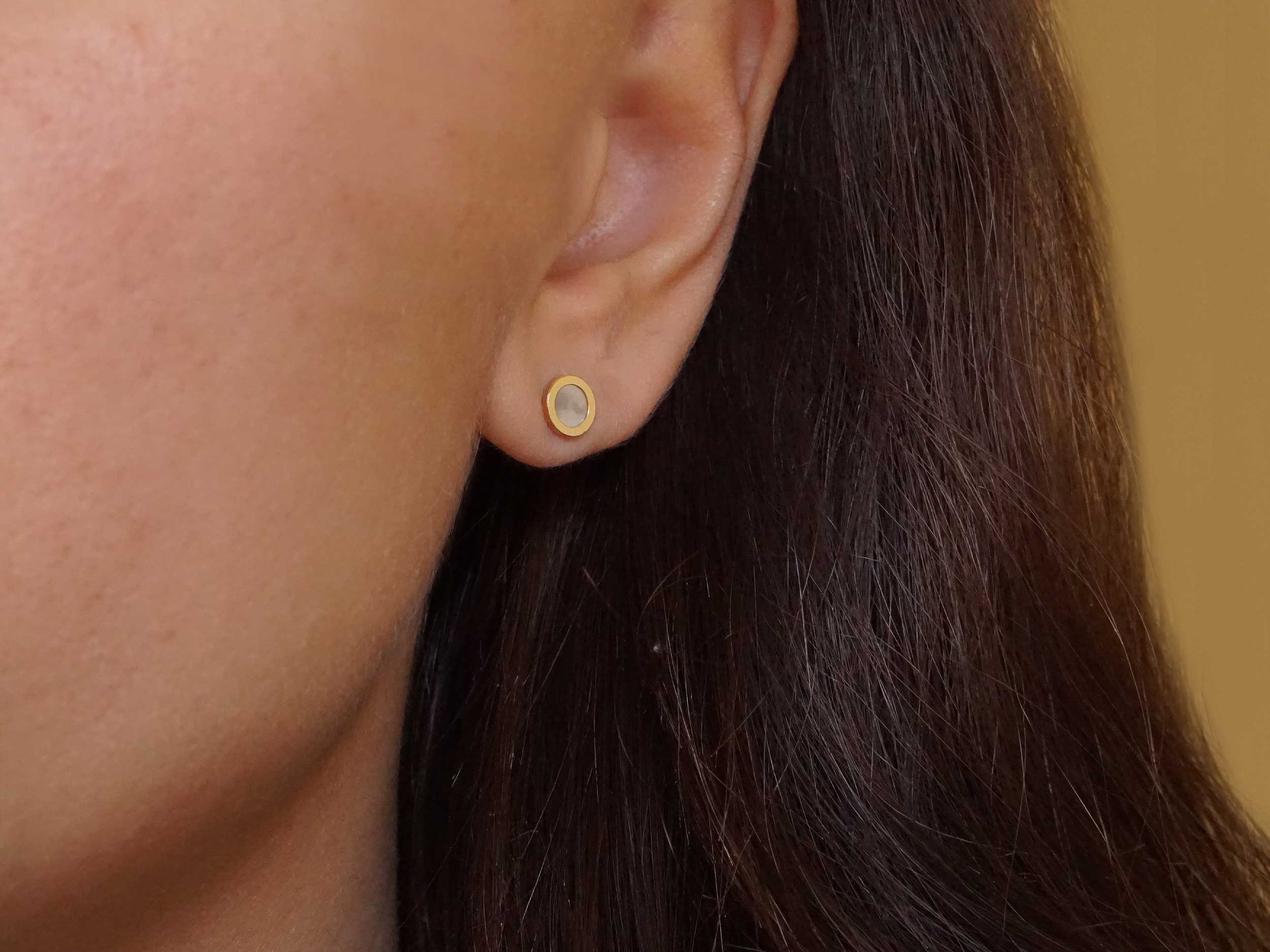 Σκουλαρίκια καρφωτά με μαργαριτάρι shell pearl, από χρυσό 14 Καρατίων. Διακριτικό κόσμημα που μπορεί να αναδείξει κάθε outfit με την διακριτική του κομψότητα!