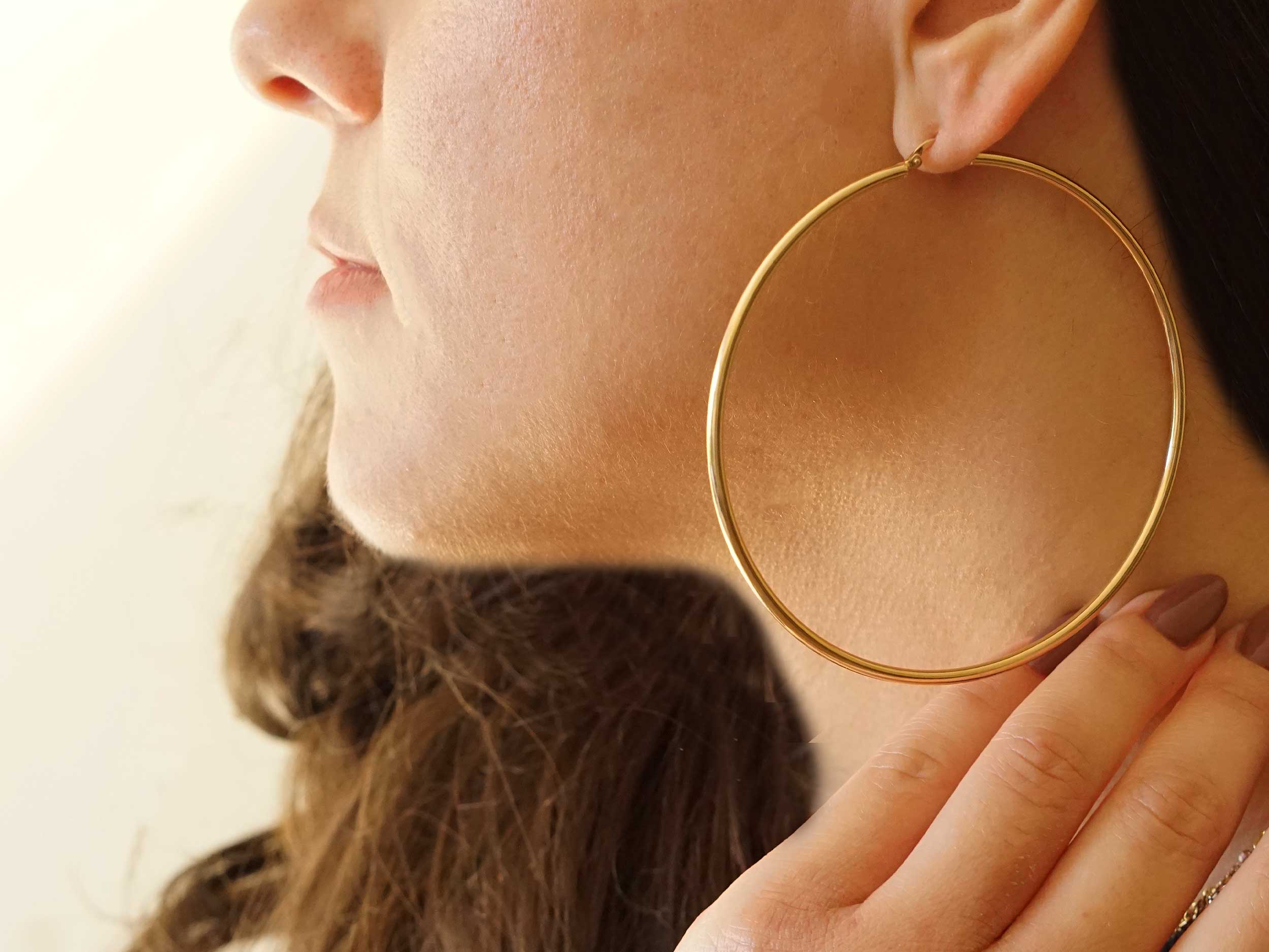 Σκουλαρίκια κρίκοι χρυσοί μεγάλοι 14 Καρατίων. Ένα εντυπωσιακό ζευγάρι χρυσοί κρίκοι με λαμπερό λουστρέ φινίρισμα. Ιδανική επιλογή για μια εμφάνιση που θα μαγνητίσει τα βλέμματα!