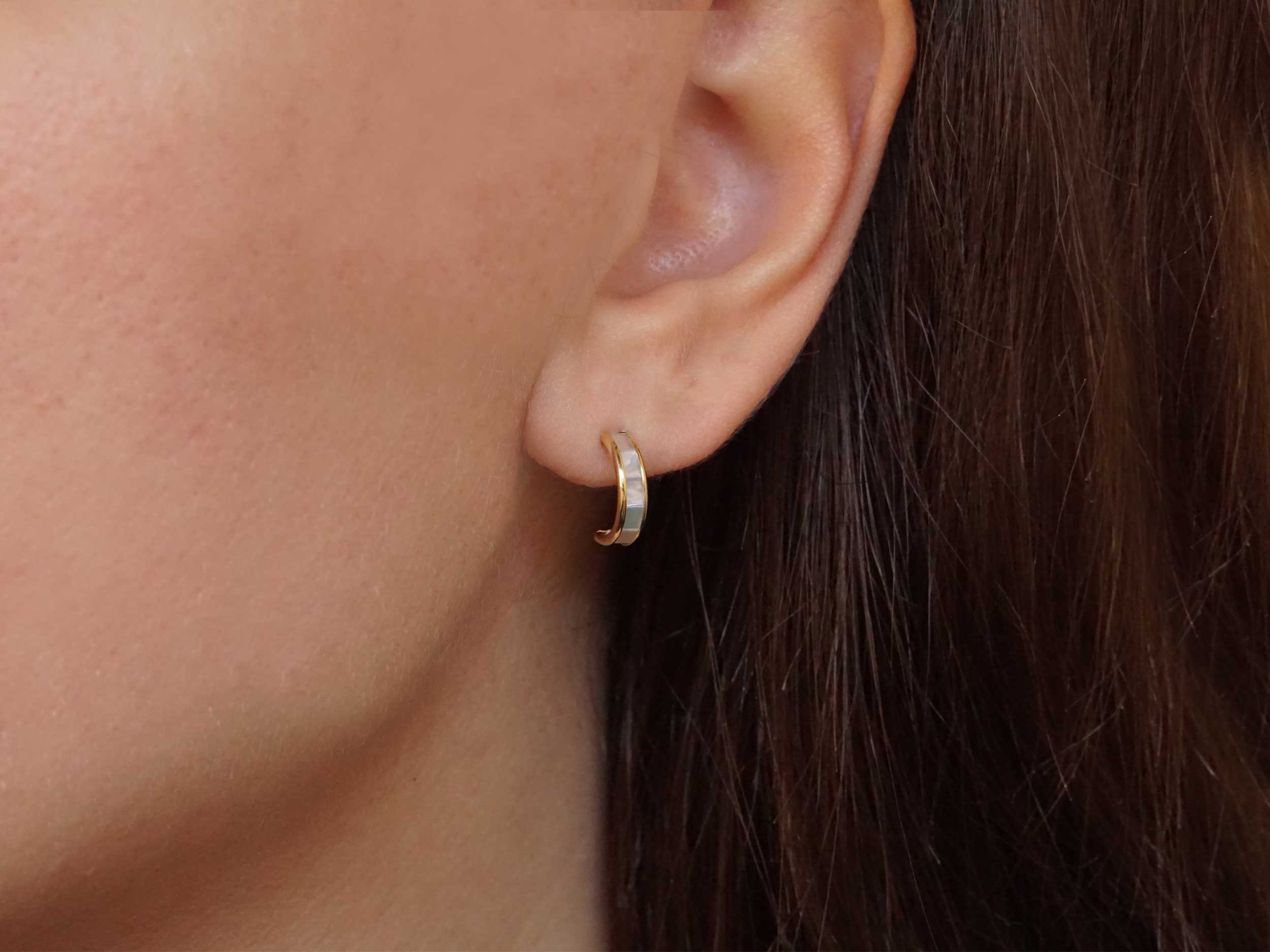 Διακριτικοί μισοί κρίκοι με μαργαριτάρι, σε χρυσό 14 Καρατίων και καρφωτό κούμπωμα. Έχουν κίτρινο χρυσό χρώμα, με λουστρέ φινίρισμα, και είναι διακοσμημένα με shell pearl. Υπέροχα σκουλαρίκια για τις καθημερινές σας εμφανίσεις και όχι μόνο!