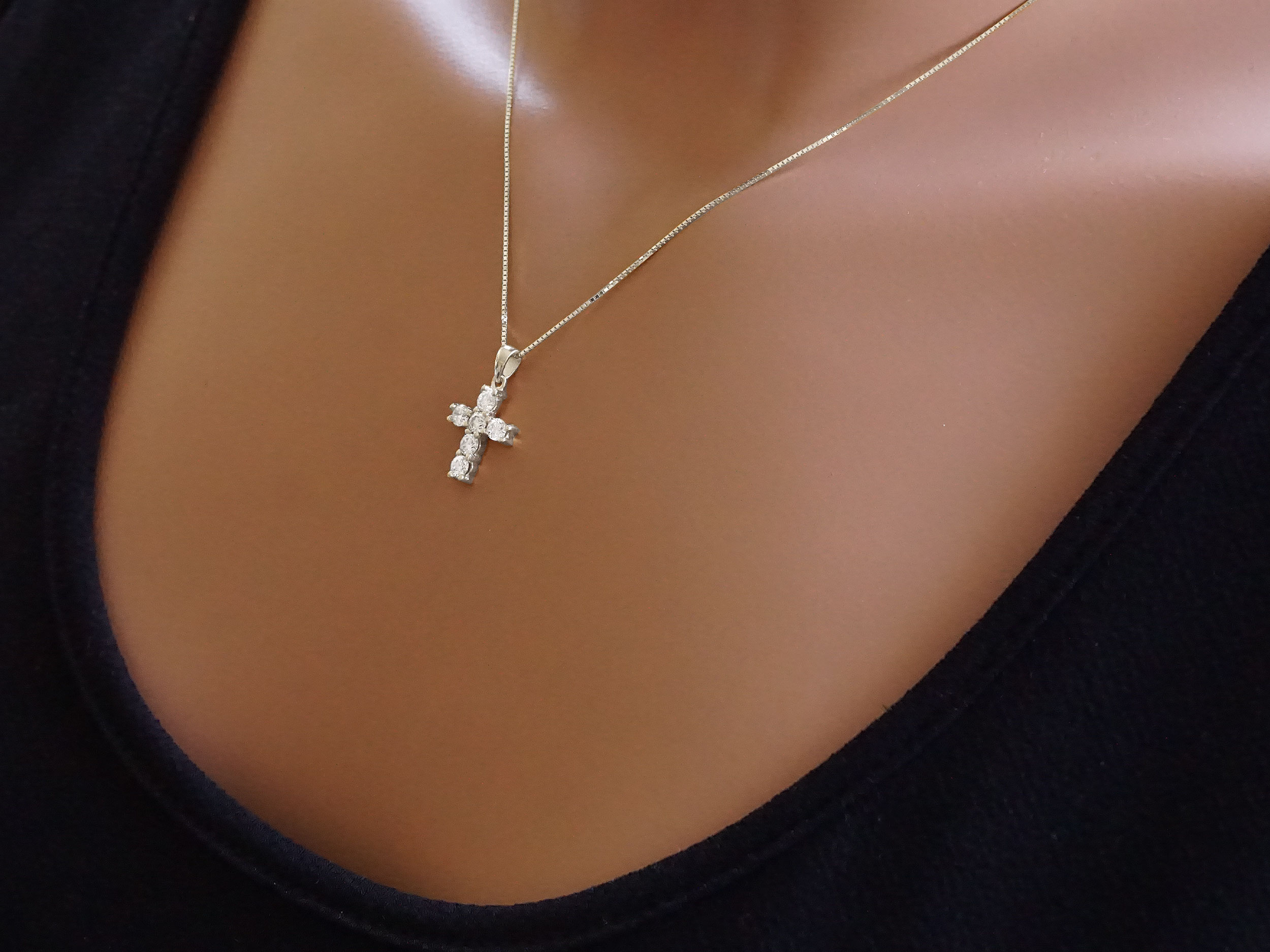 Σταυρός λευκόχρυσος με μπριγιάν και αλυσίδα, 18 Καρατίων. Το συνολικό μήκος του με τον κρίκο είναι 1,80 cm. Κοσμείται με έξι διαμάντια κοπής round brilliant και συνοδεύεται από μια λευκόχρυση βενετσιάνα αλυσίδα 18Κ, μήκους 40,00 cm. Ένα υπέροχο κόσμημα υψηλής αισθητικής και συμβολικής αξίας.