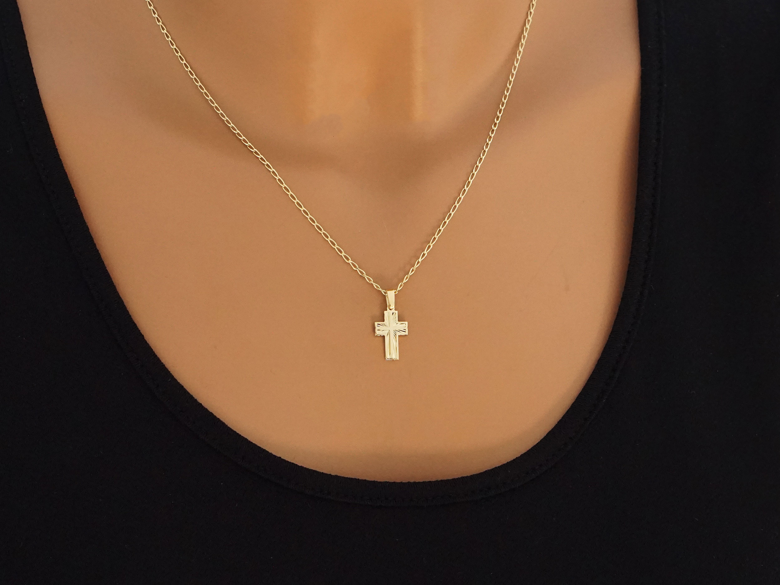 Γυναικείο σταυρουδάκι χρυσό 14Κ. Ένα μοναδικό κόσμημα με υπέροχο λουστρέ φινίρισμα και διαμανταρισμένη επιφάνεια στο εσωτερικό του. Συνδυάζεται άψογα με τις χρυσές αλυσίδες της συλλογής μας.