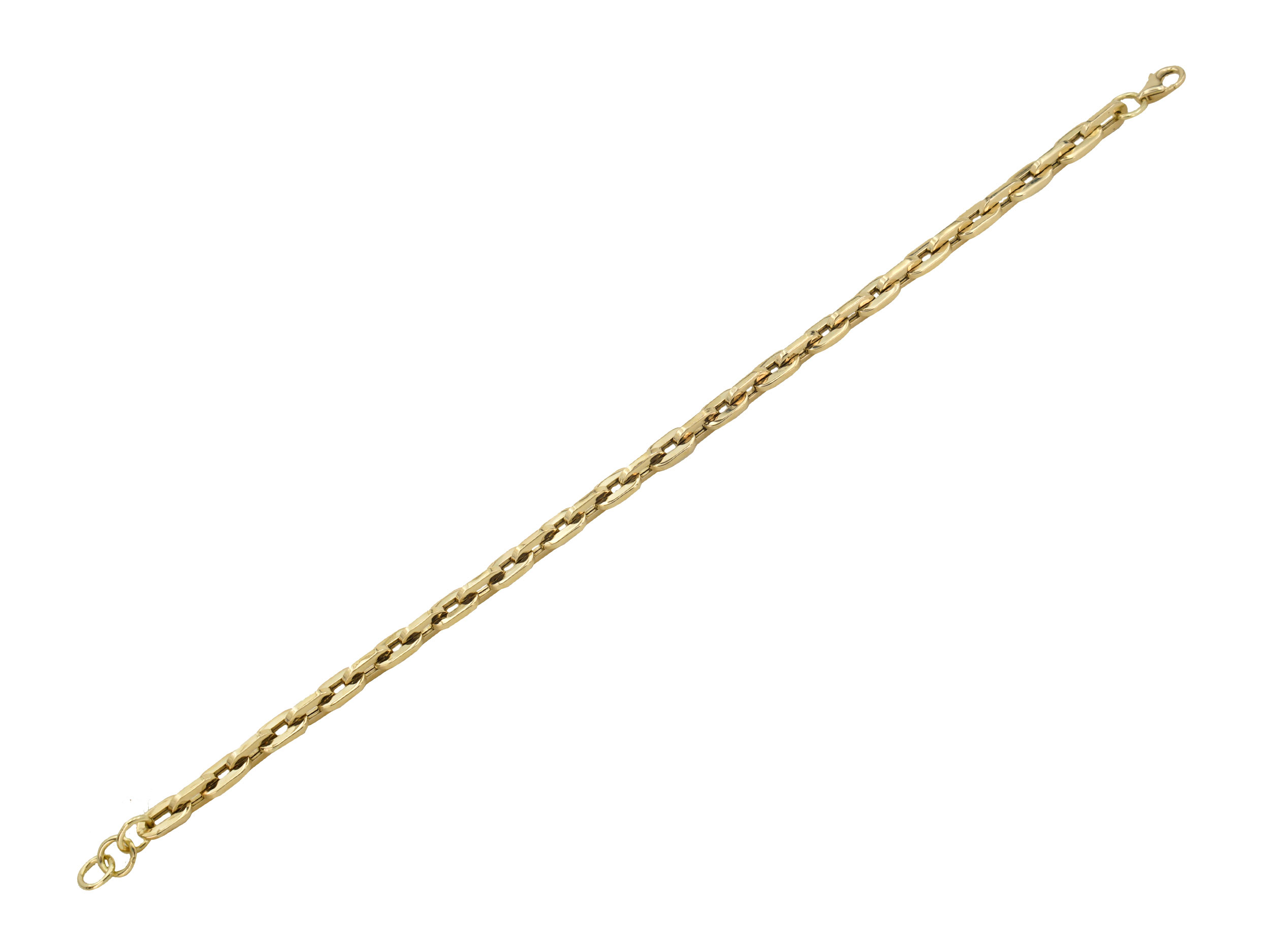 Μοναδικό unisex βραχιόλι αλυσίδα χρυσό 14 Καρατίων, σε κίτρινο χρυσό χρώμα και λουστρέ φινίρισμα. To μήκος του είναι 19,50 cm με επιπλέον επέκταση 1,00 cm. Υπέροχη επιλογή κοσμήματος για stylish εμφανίσεις που ξεχωρίζουν!
