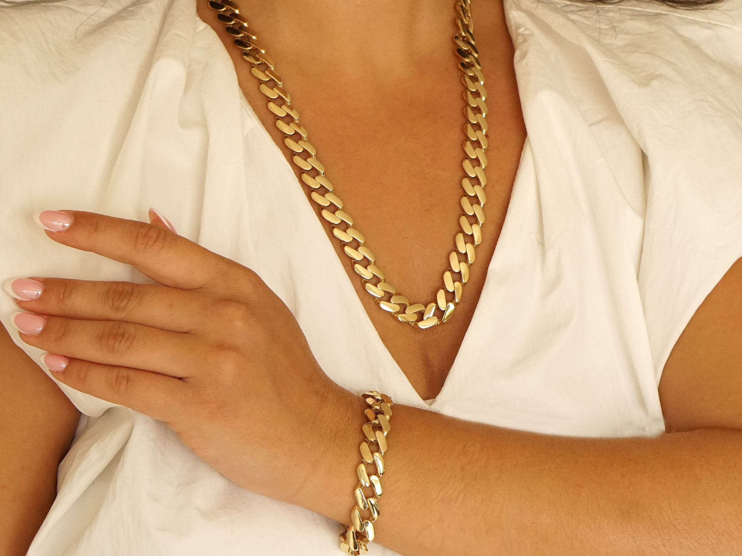 Βραχιόλι αλυσίδα χρυσό 14 Καρατίων, με λαμπερό λουστρέ φινίρισμα. Έχει μήκος 21,00 cm και πλάτος 1,2 cm. Είναι ένα εντυπωσιακό κόσμημα με διαχρονικό σχέδιο και στιβαρό design. Το βραχιόλι διαθέτει κούμπωμα ασφαλείας, εξασφαλίζοντας σταθερότητα και άνεση κατά τη χρήση.