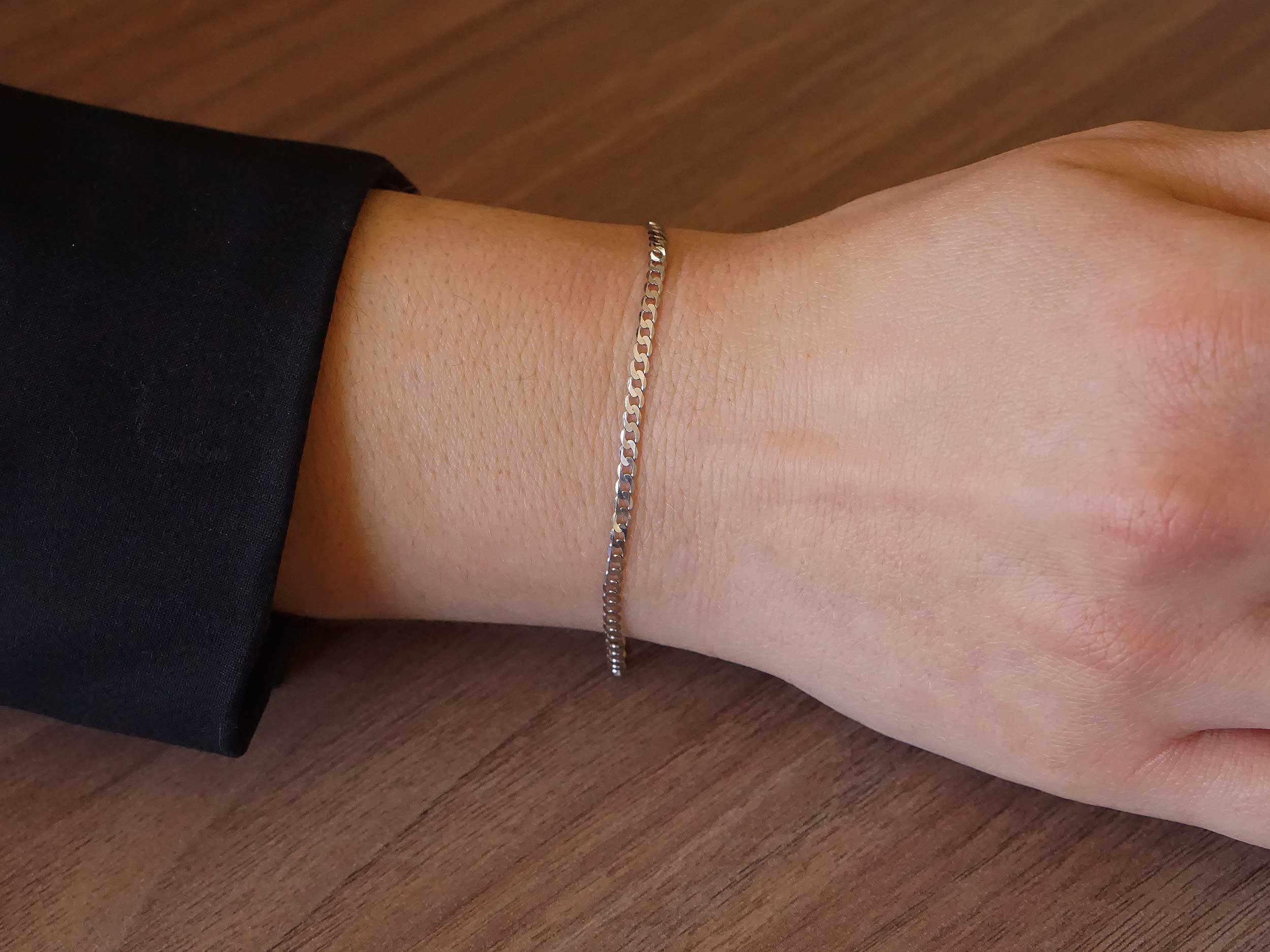 Βραχιόλι αλυσίδα gourmet σε λευκόχρυσο 14Κ, με λουστρέ φινίρισμα. Ένα κομψό κόσμημα που συνδυάζεται εύκολα με κάθε στυλ, φοριέται μόνο του ή μαζί με άλλα βραχιόλια. Αποστέλλεται σε συσκευασία δώρου!